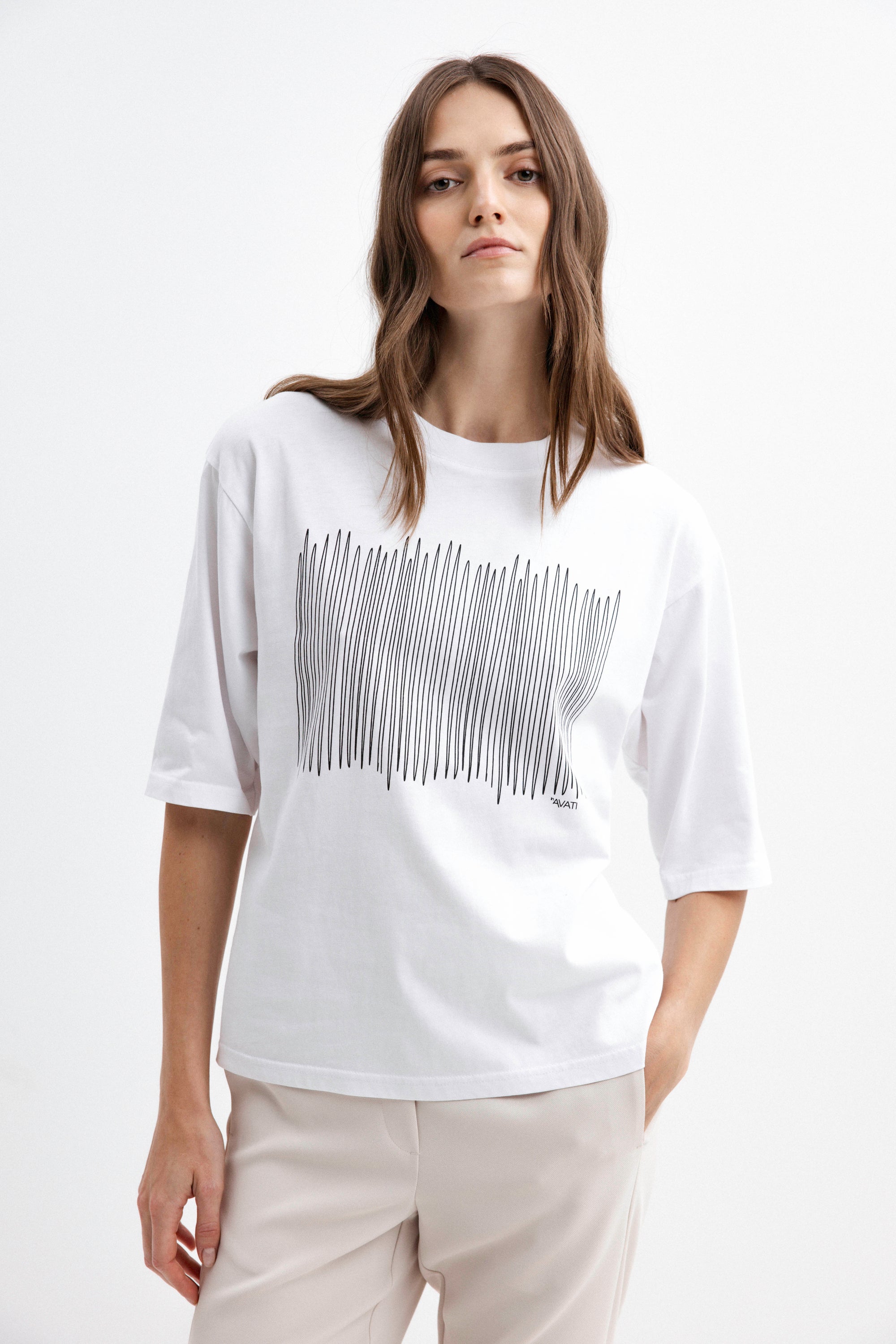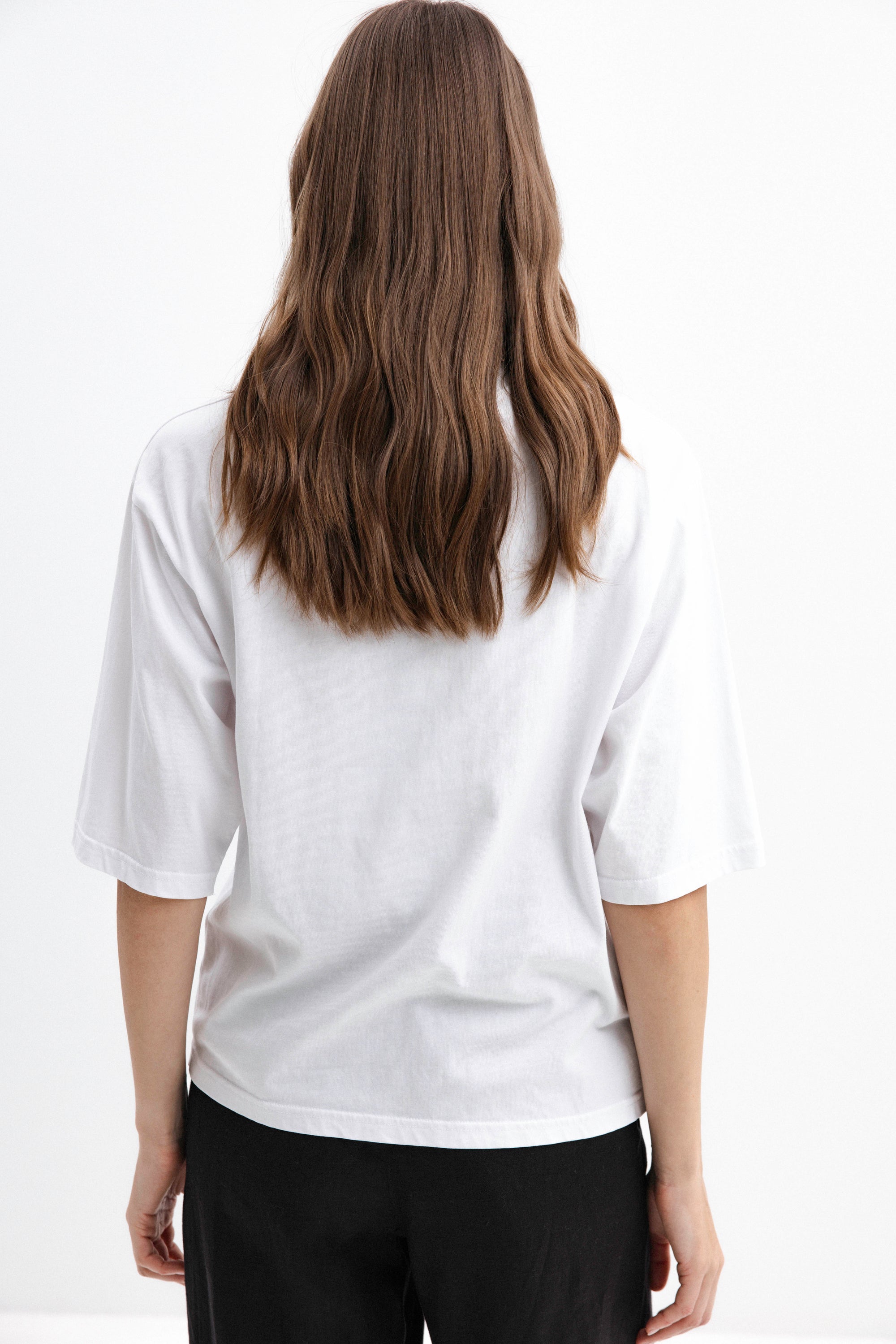 WHITE JERSEY BLOUSE WITH LONG SLEEVES