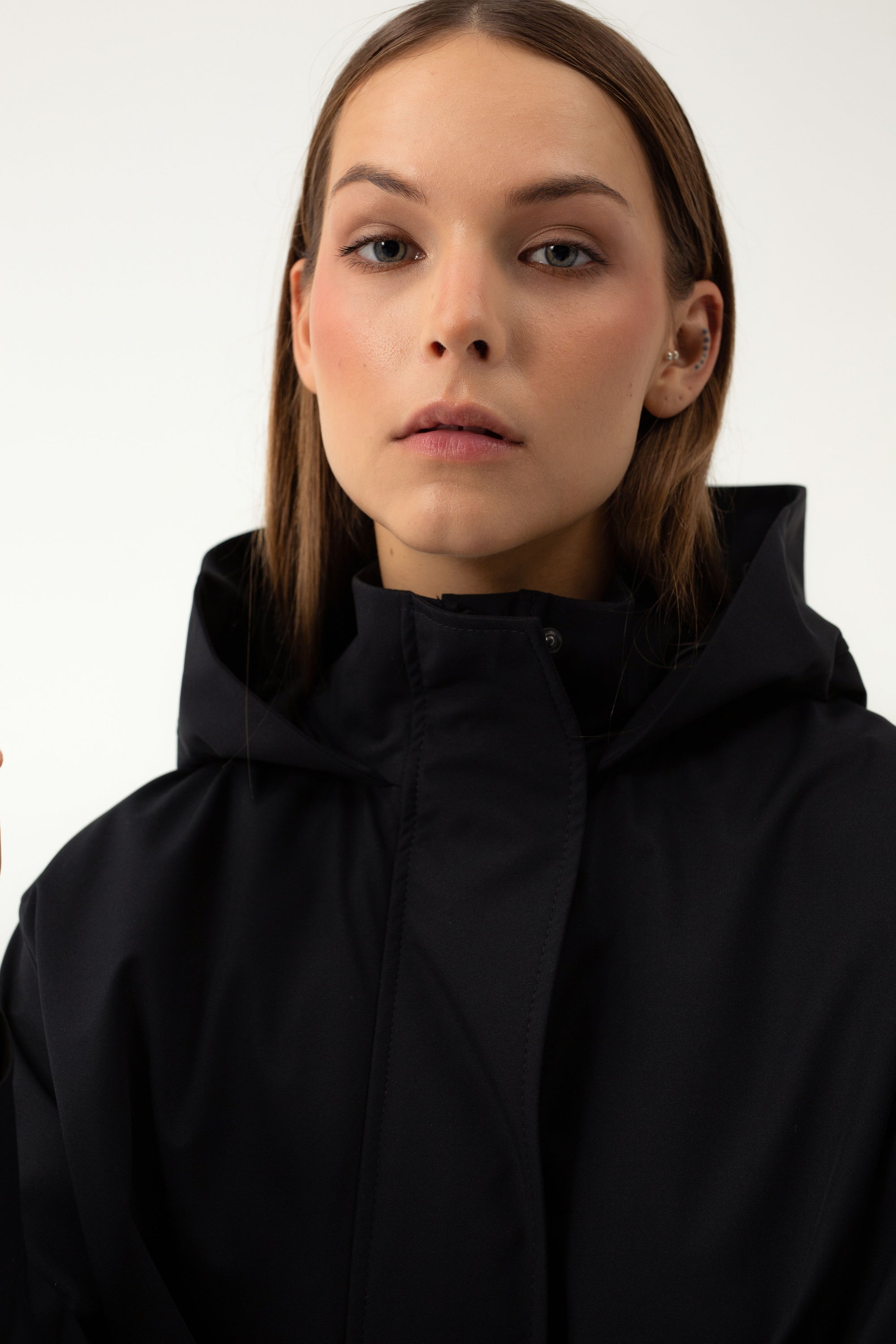 BLACK RAINCOAT WITH A HOOD