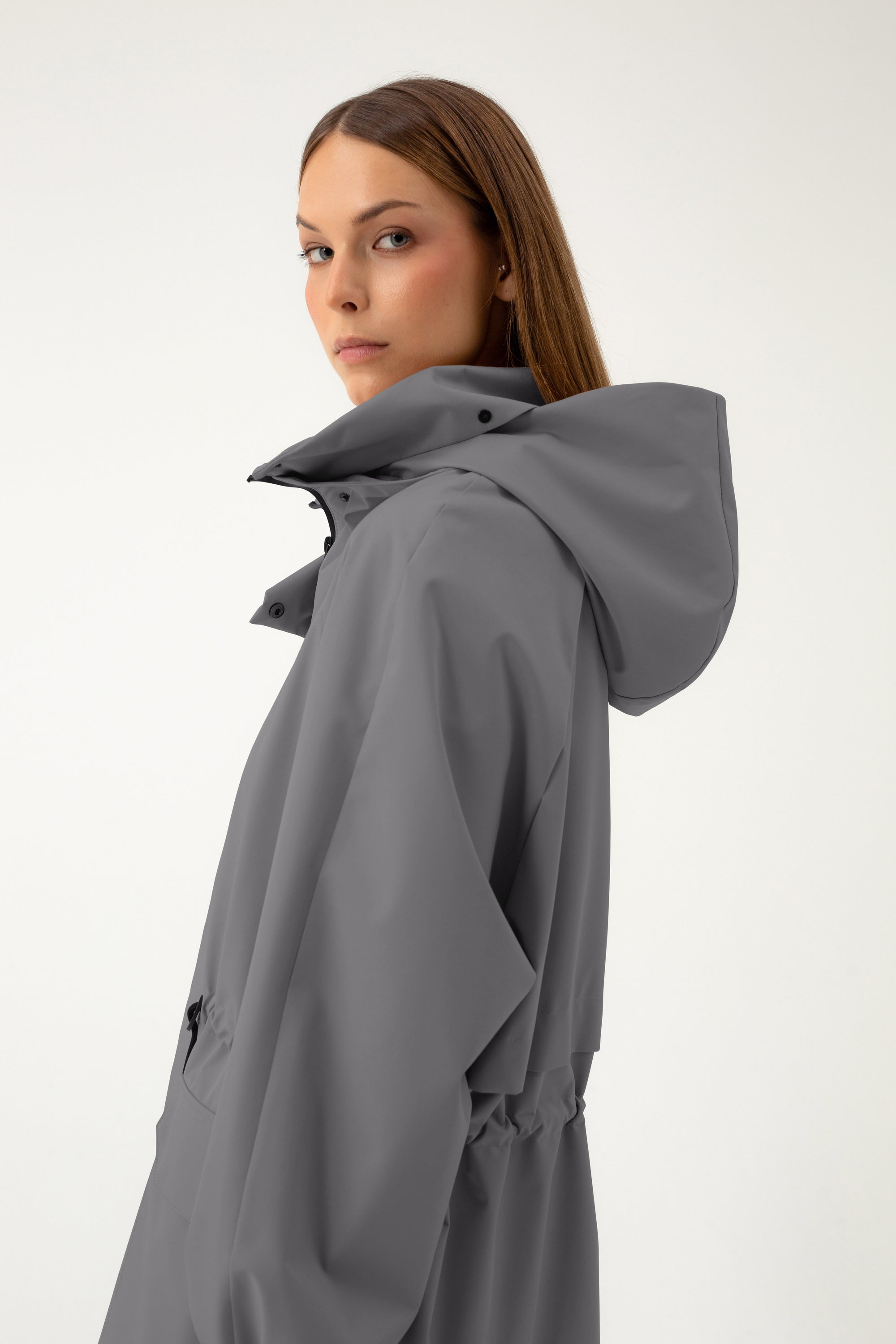 GREY RAINCOAT WITH HIDDEN HOOD