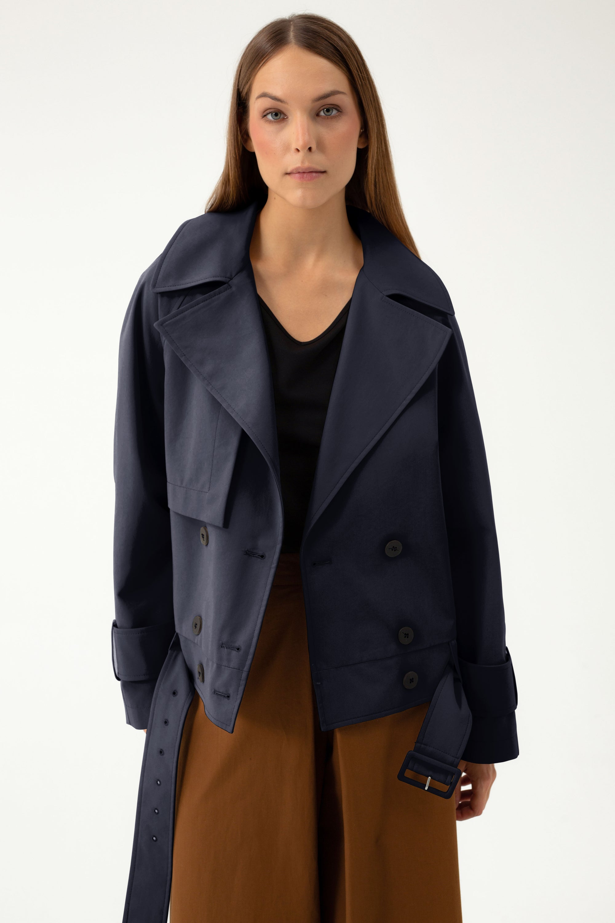 SHORT DARK NAVY TRENCH COAT