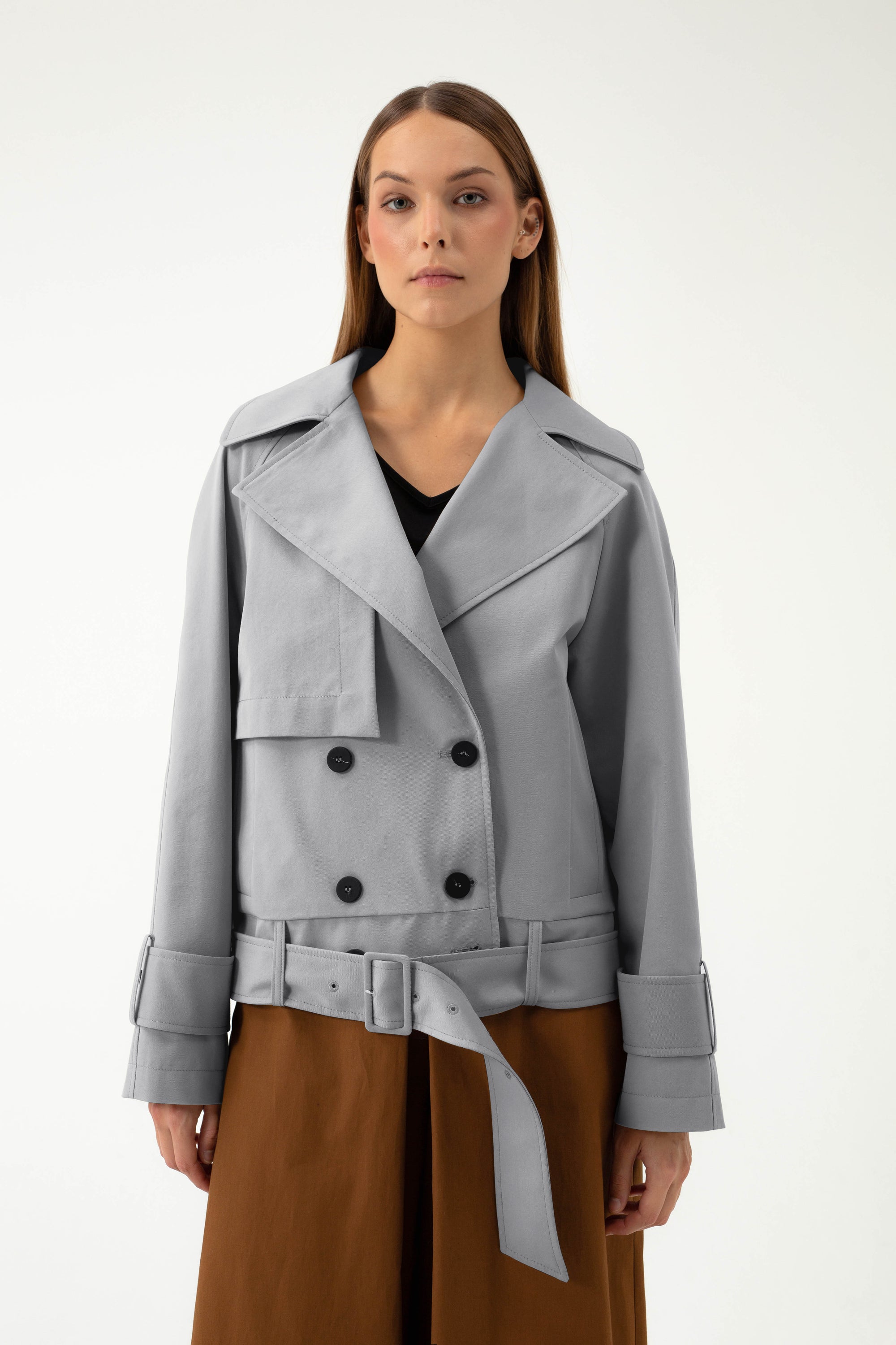 SHORT LIGHT GREY TRENCH COAT
