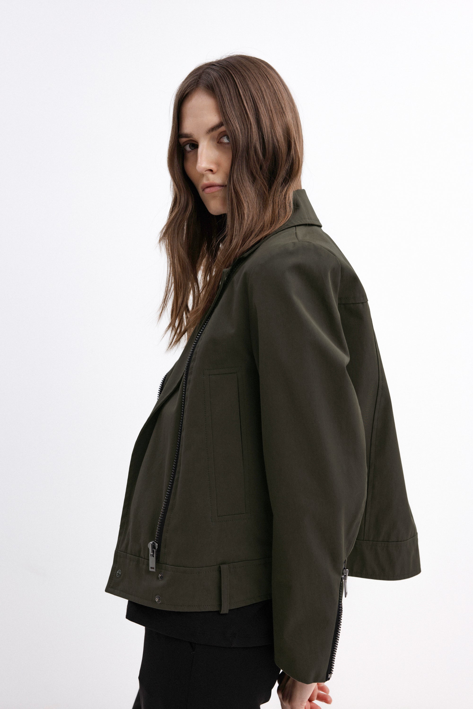 BIKER-STYLE SHORT JACKET IN OLIVE