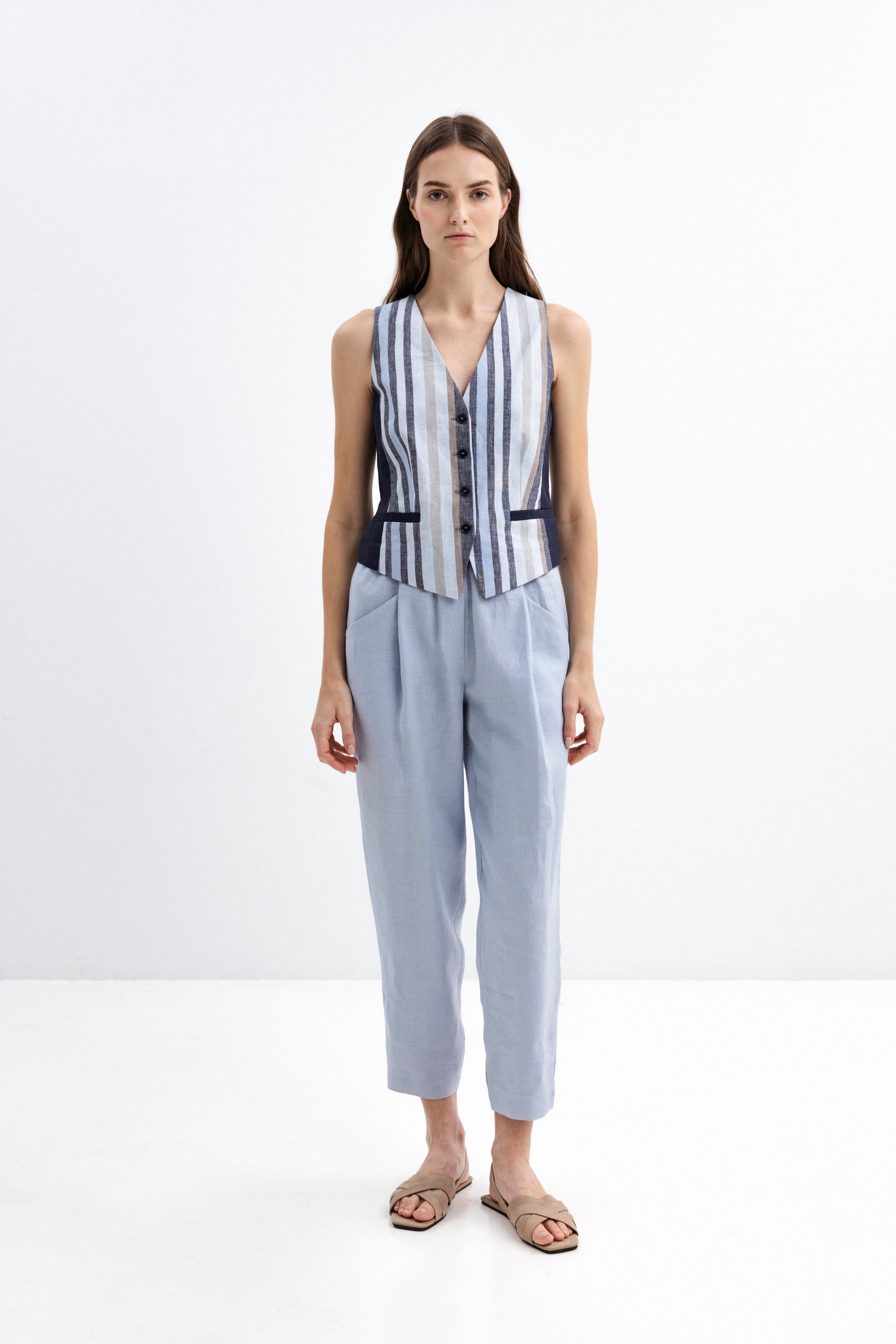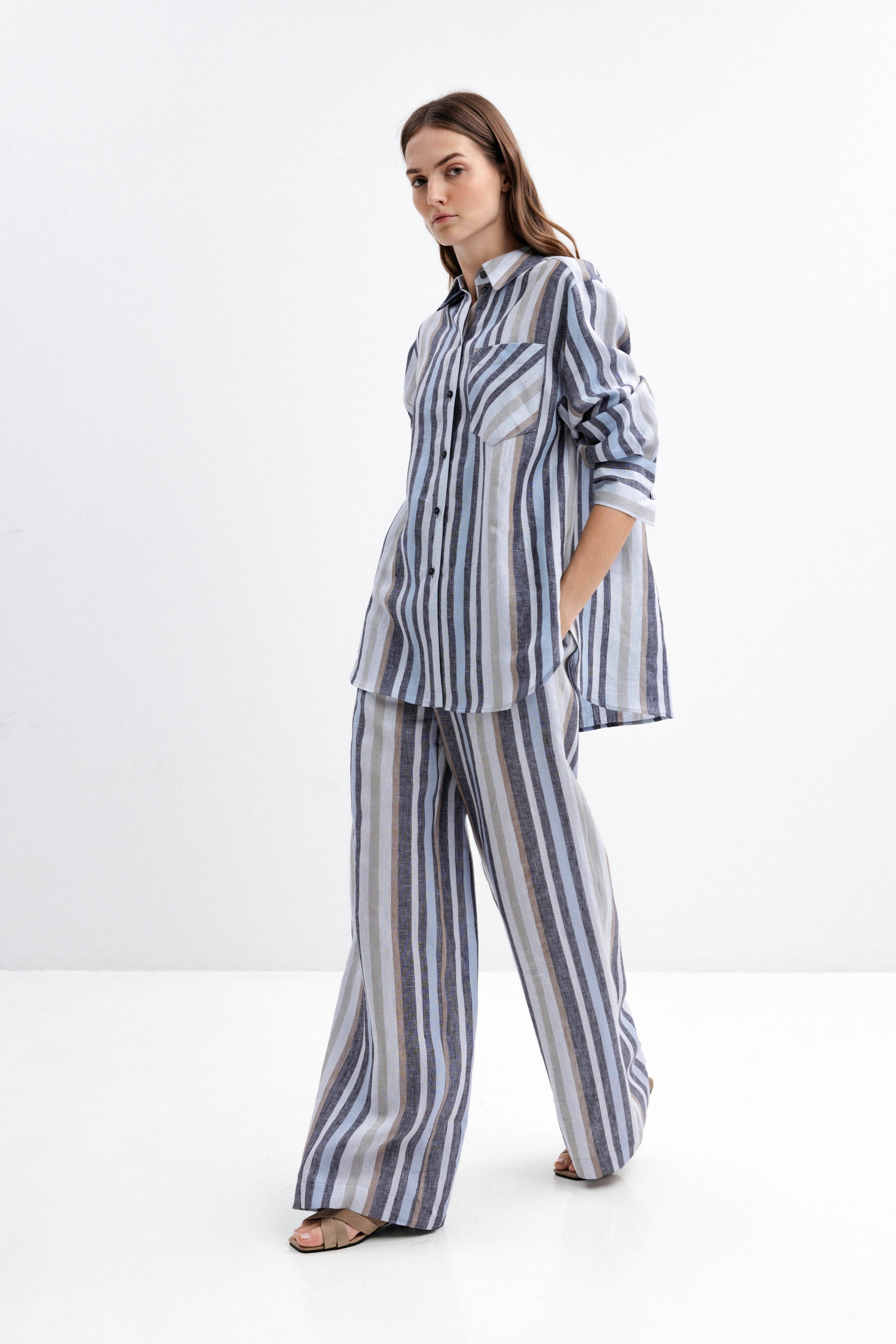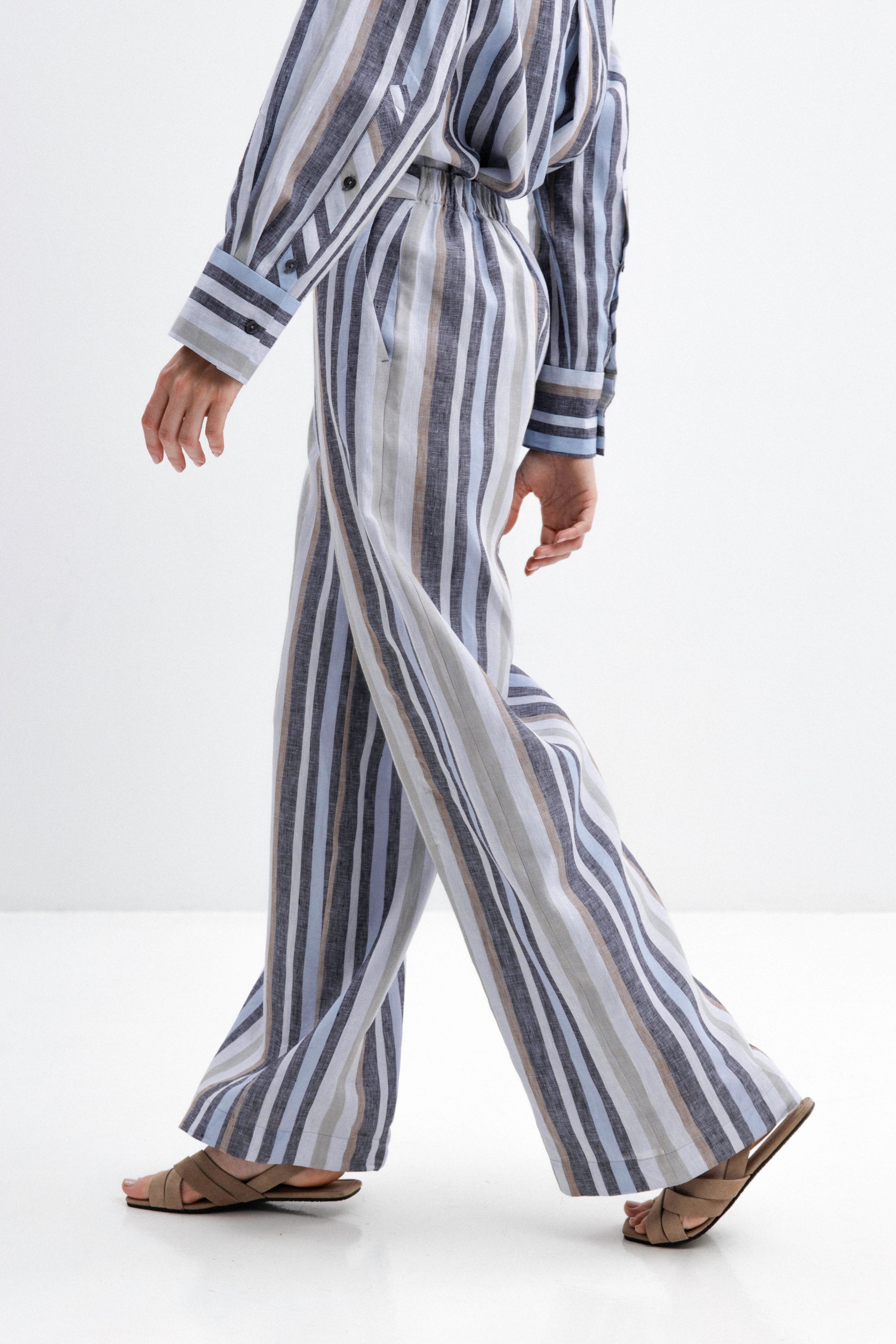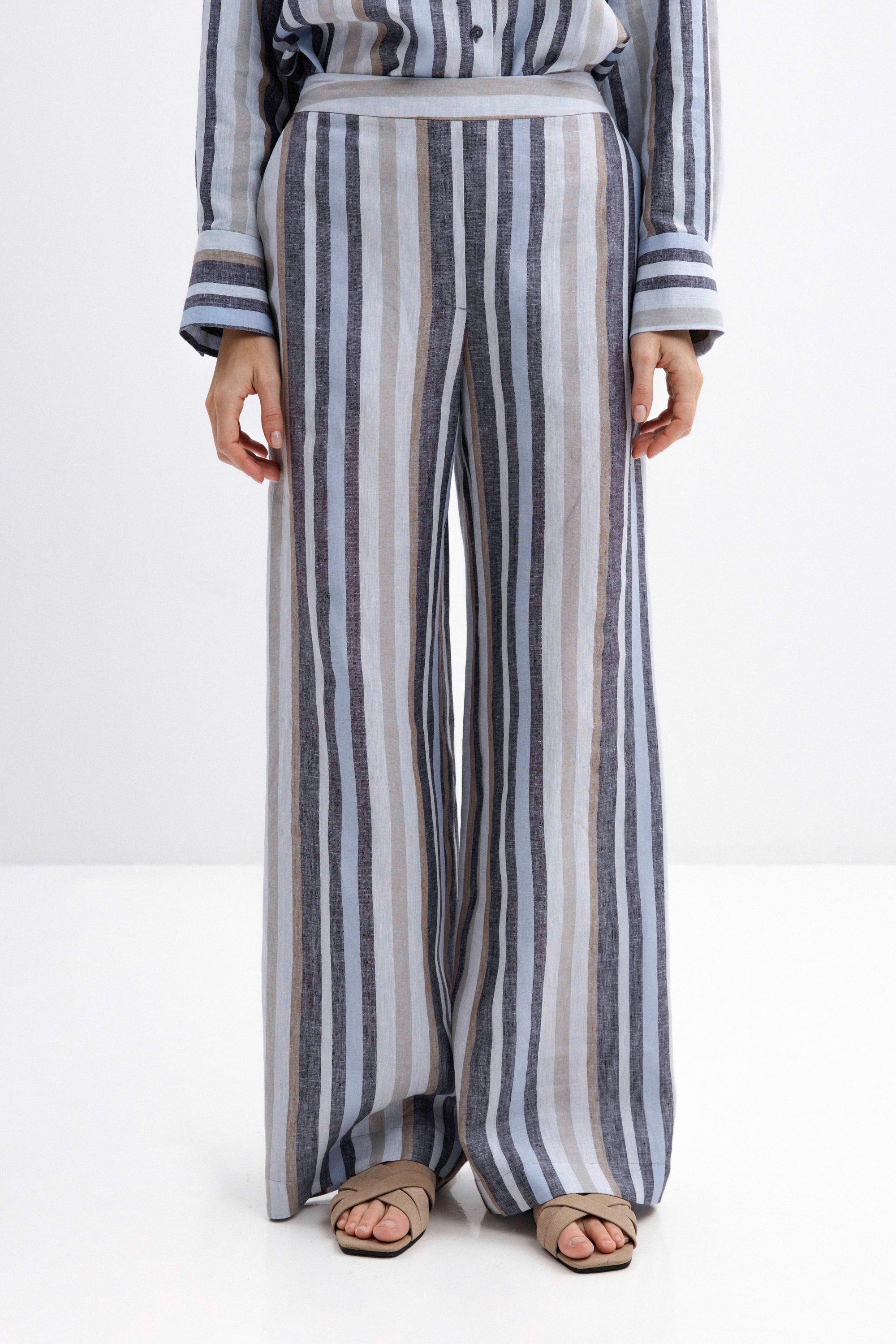 STRIPED WIDE-LEG LINEN TROUSERS
