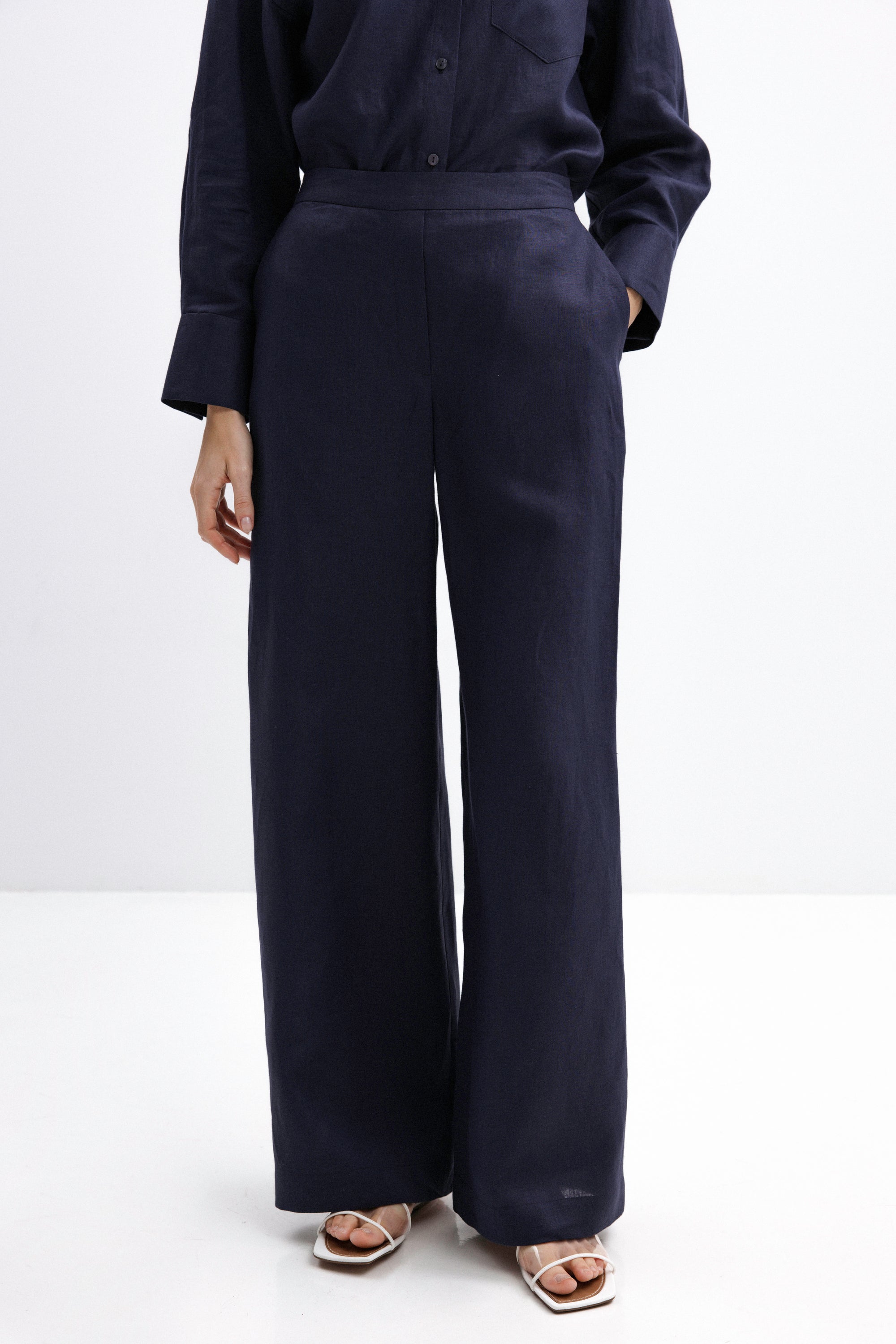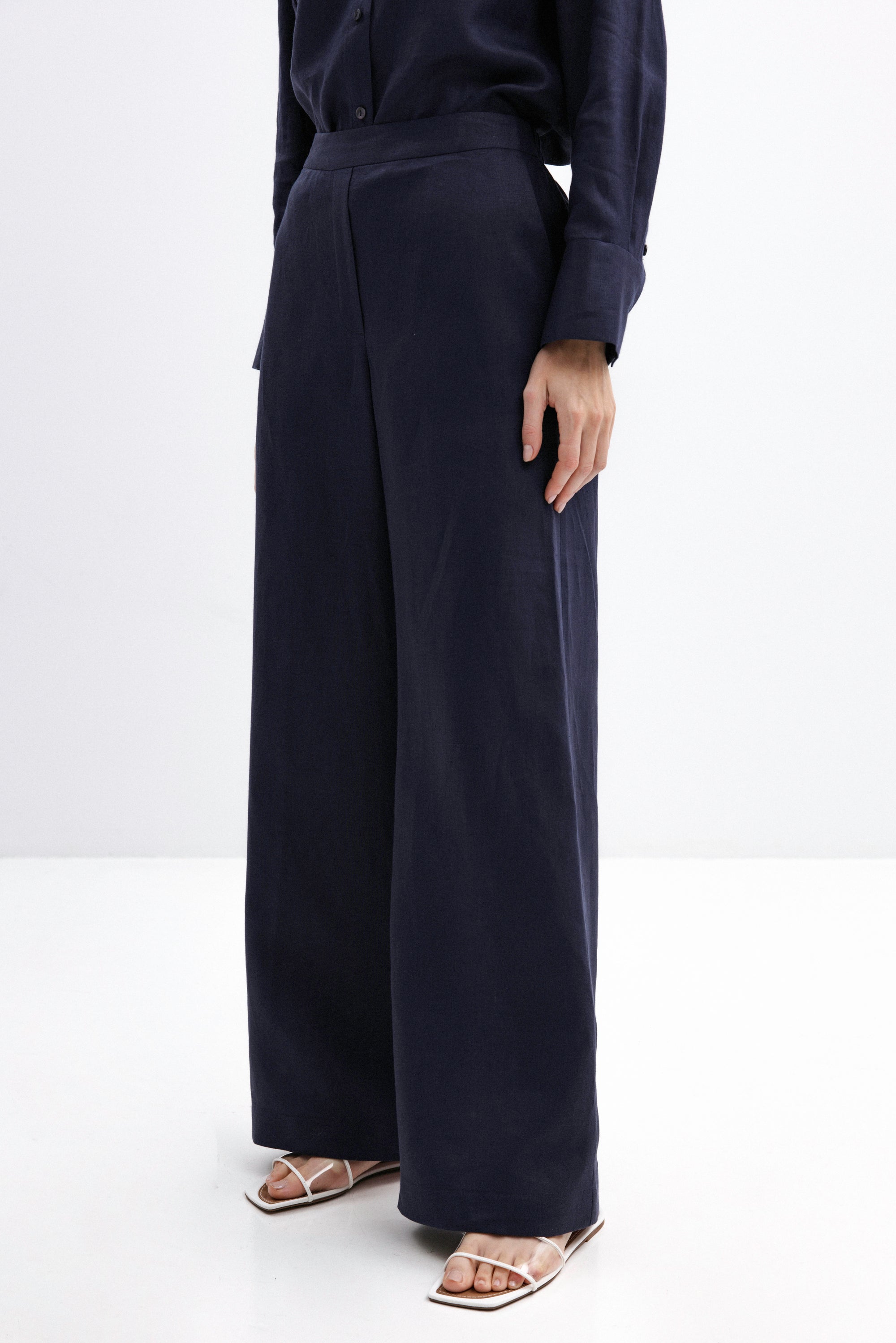 NAVY WIDE-LEG LINEN TROUSERS