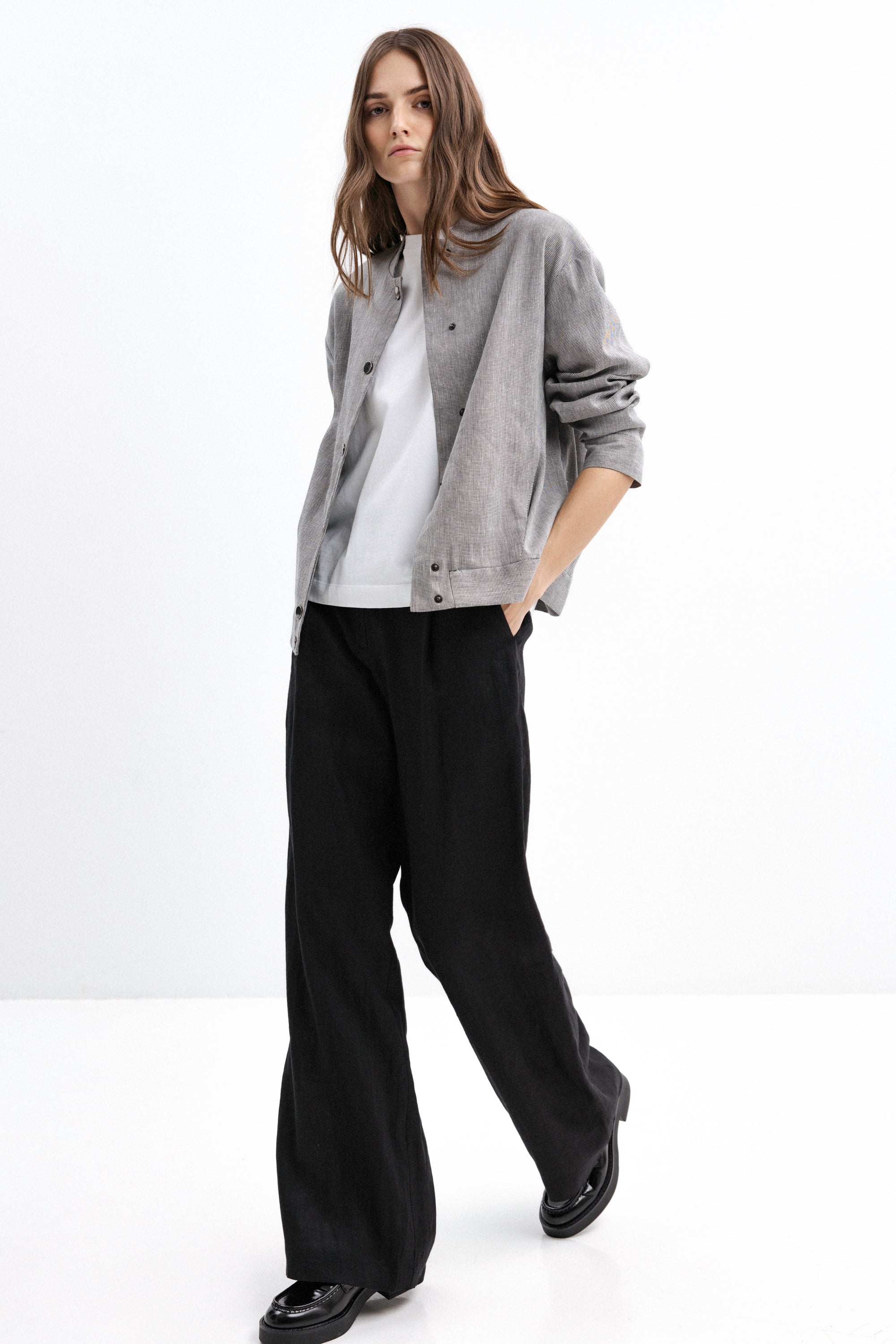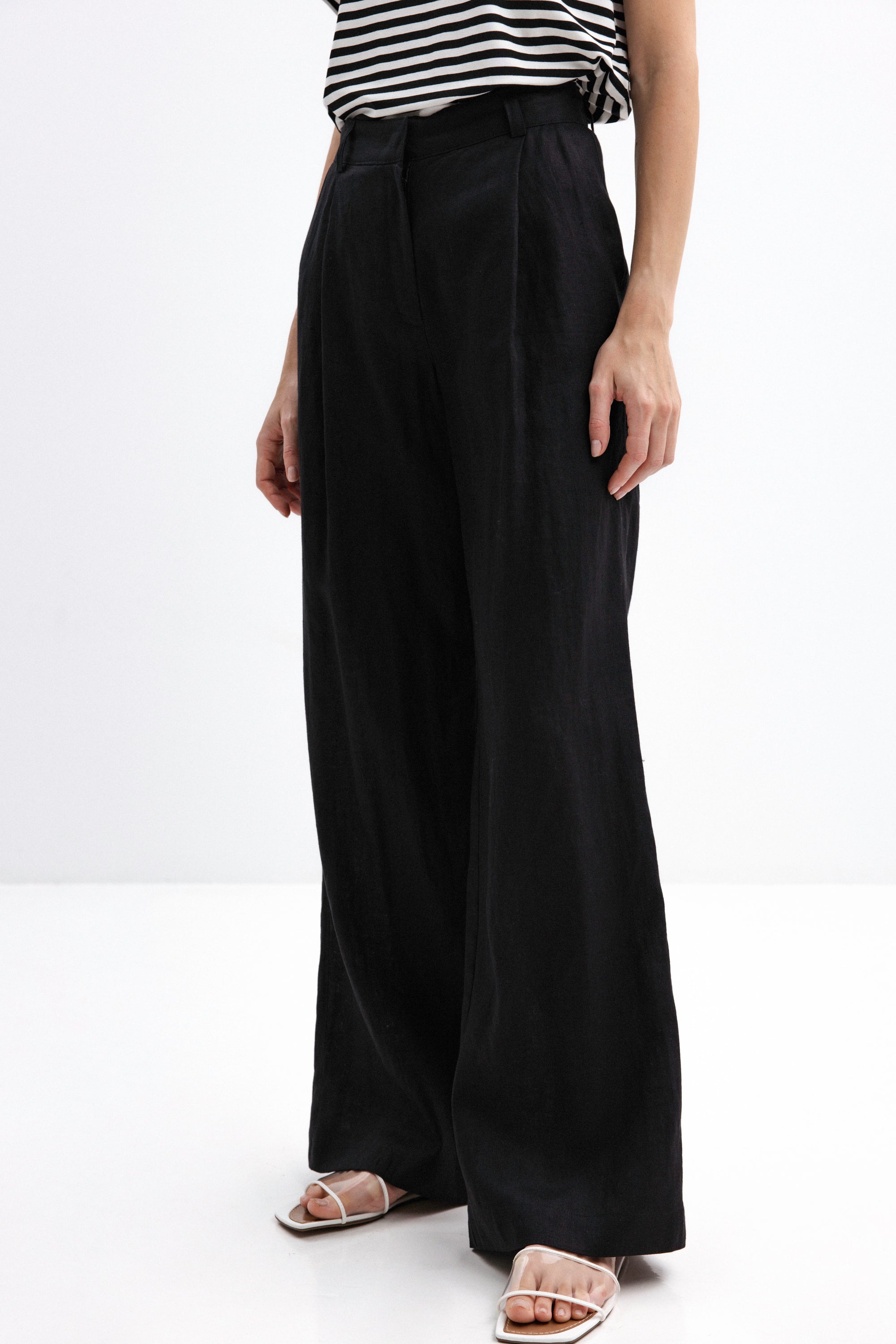 BLACK WIDE-LEG LINEN TROUSERS