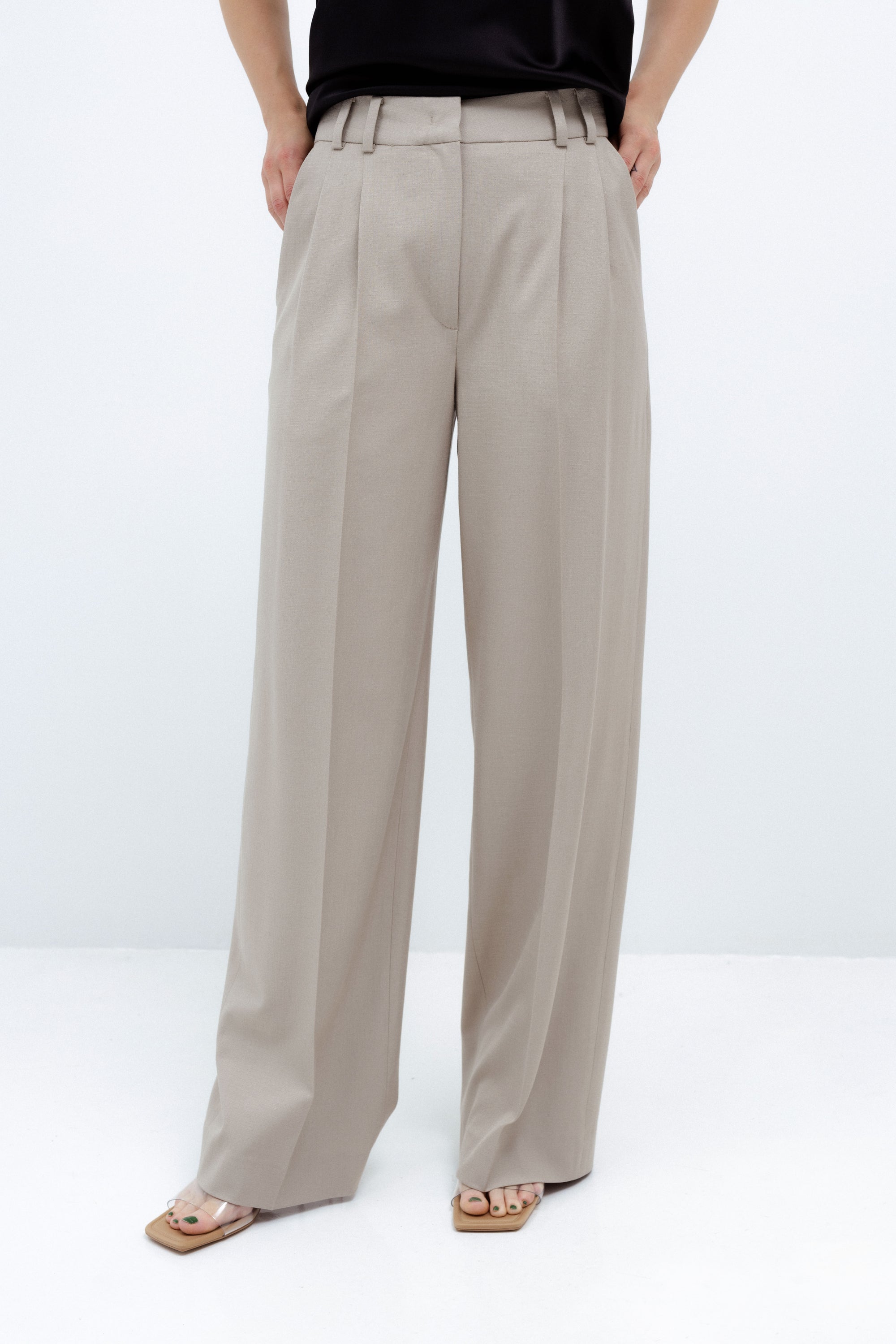 WIDE-LEG TROUSERS IN LIGHT TAUPE