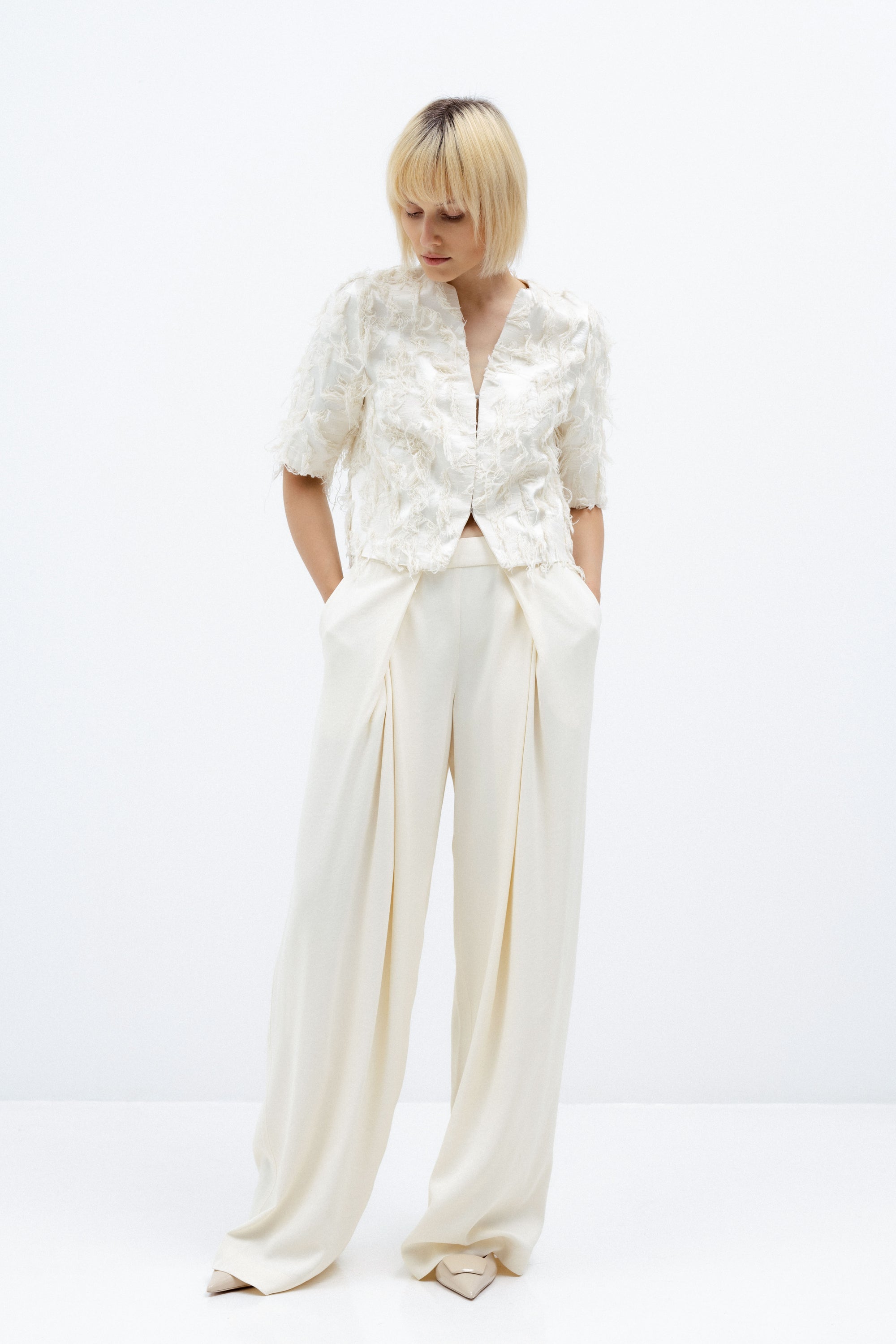 MILK-SHADE WIDE LEG TROUSERS WITH PLEATS