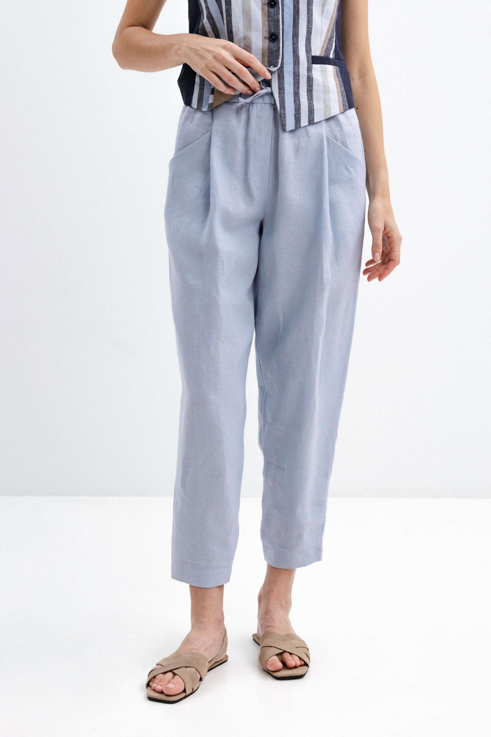 LIGHT BLUE LINEN JOGGER TROUSERS