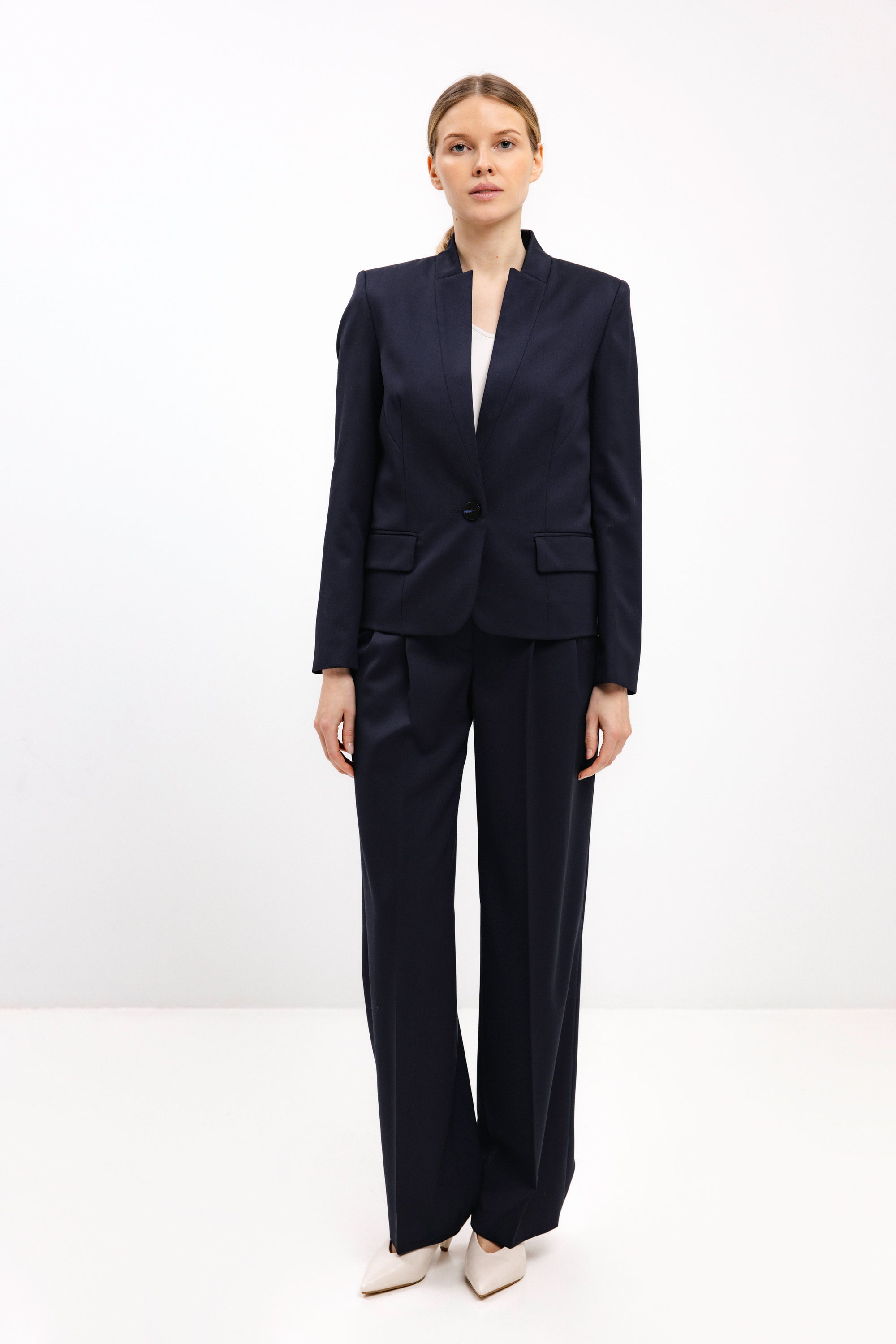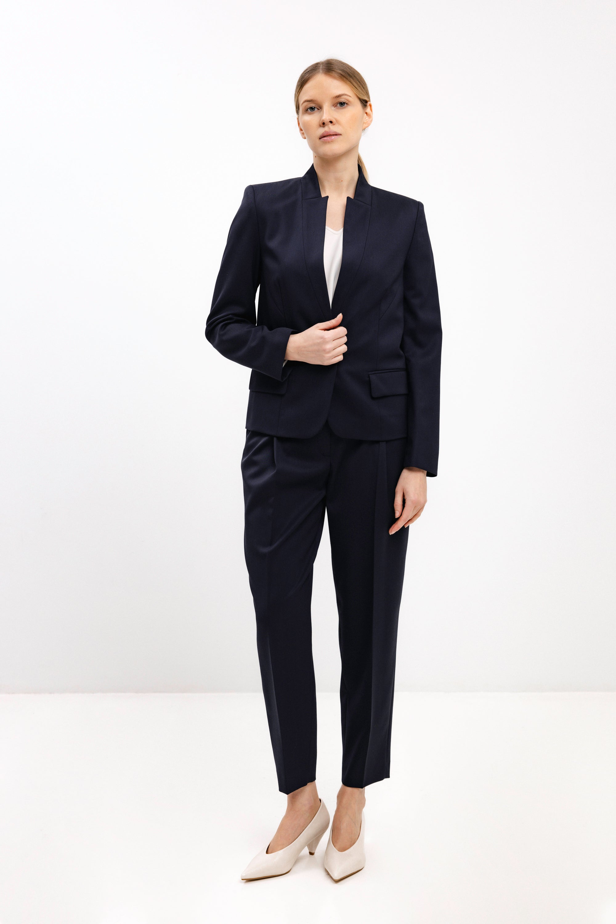 TAPERED NAVY TROUSERS WITH FRONT PLEATS
