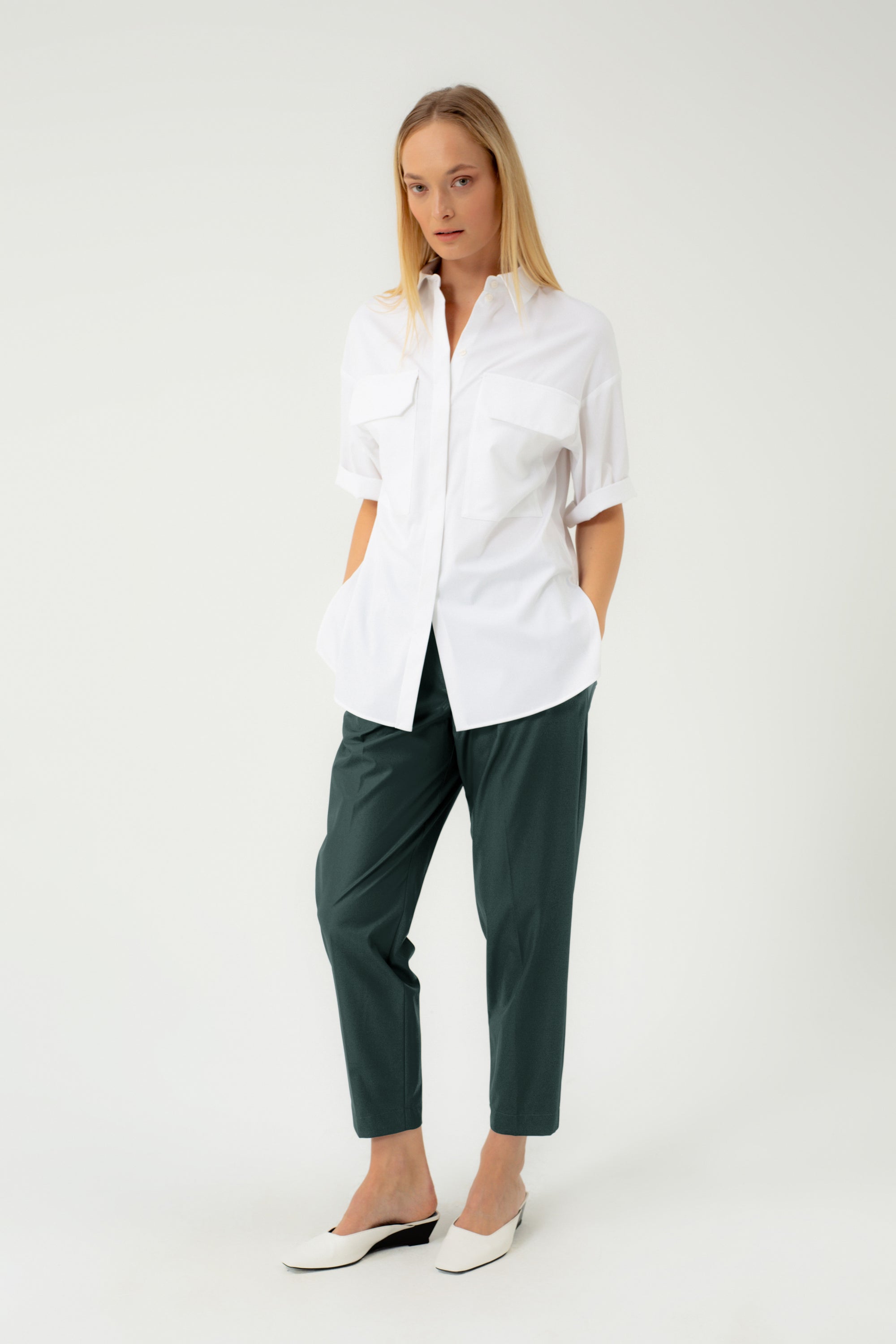 HIGH WAIST SHORTS WITH POCKETS EVERGREEN