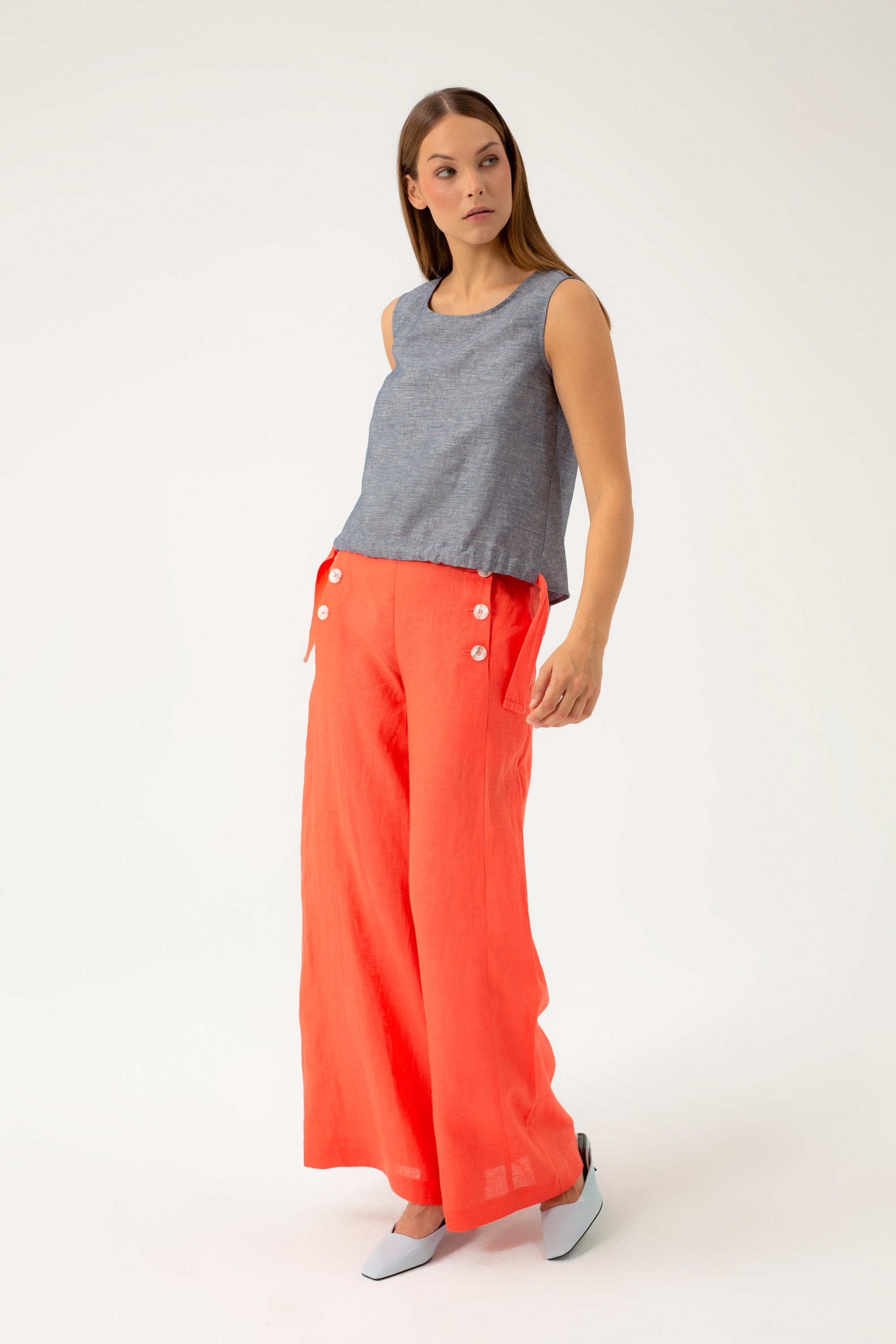 WIDE-LEG STRIPED TROUSERS WITH LINEN