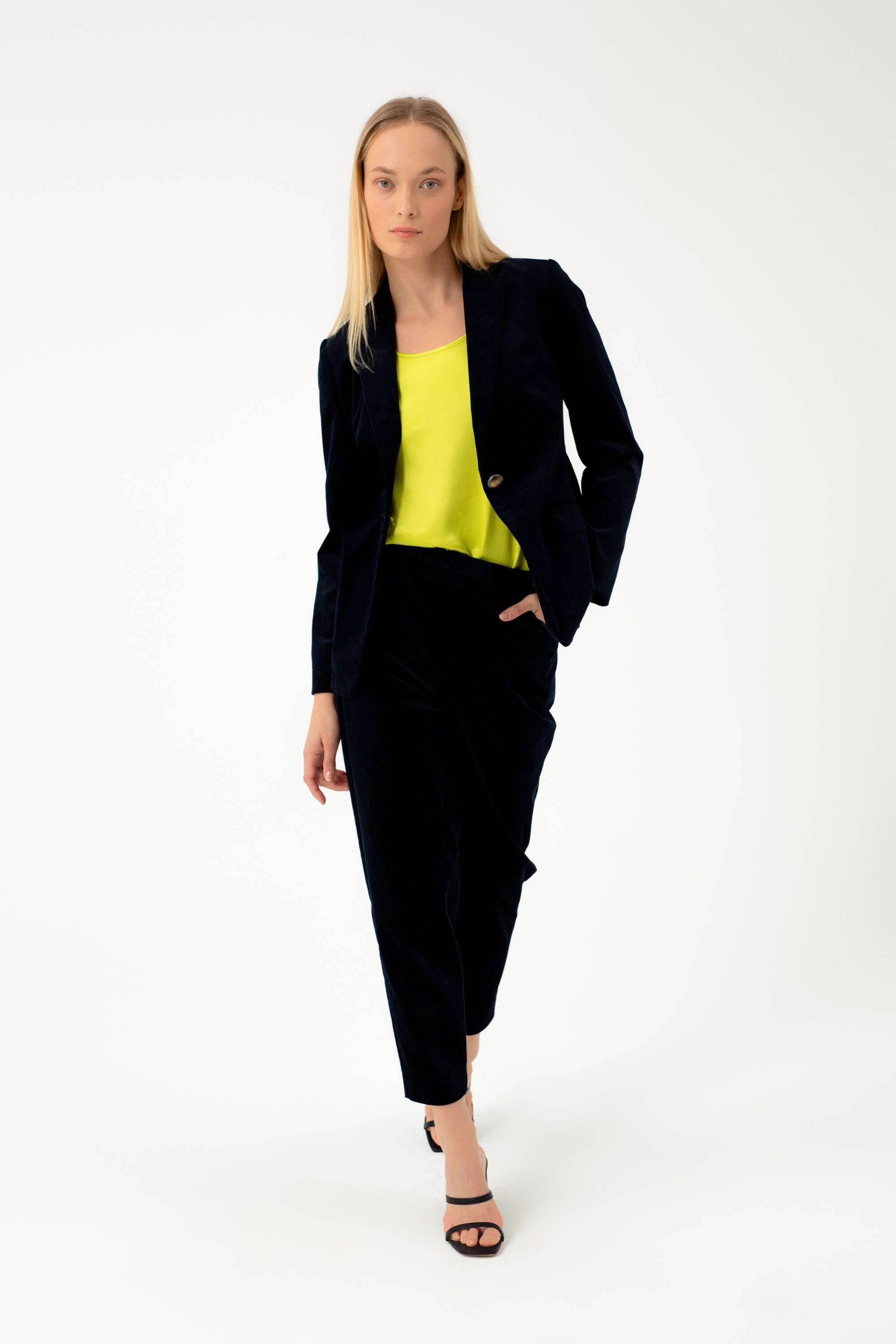 LINEN RICH TRAPERED ANKLE GLAZER TROUSERS IN NAVY