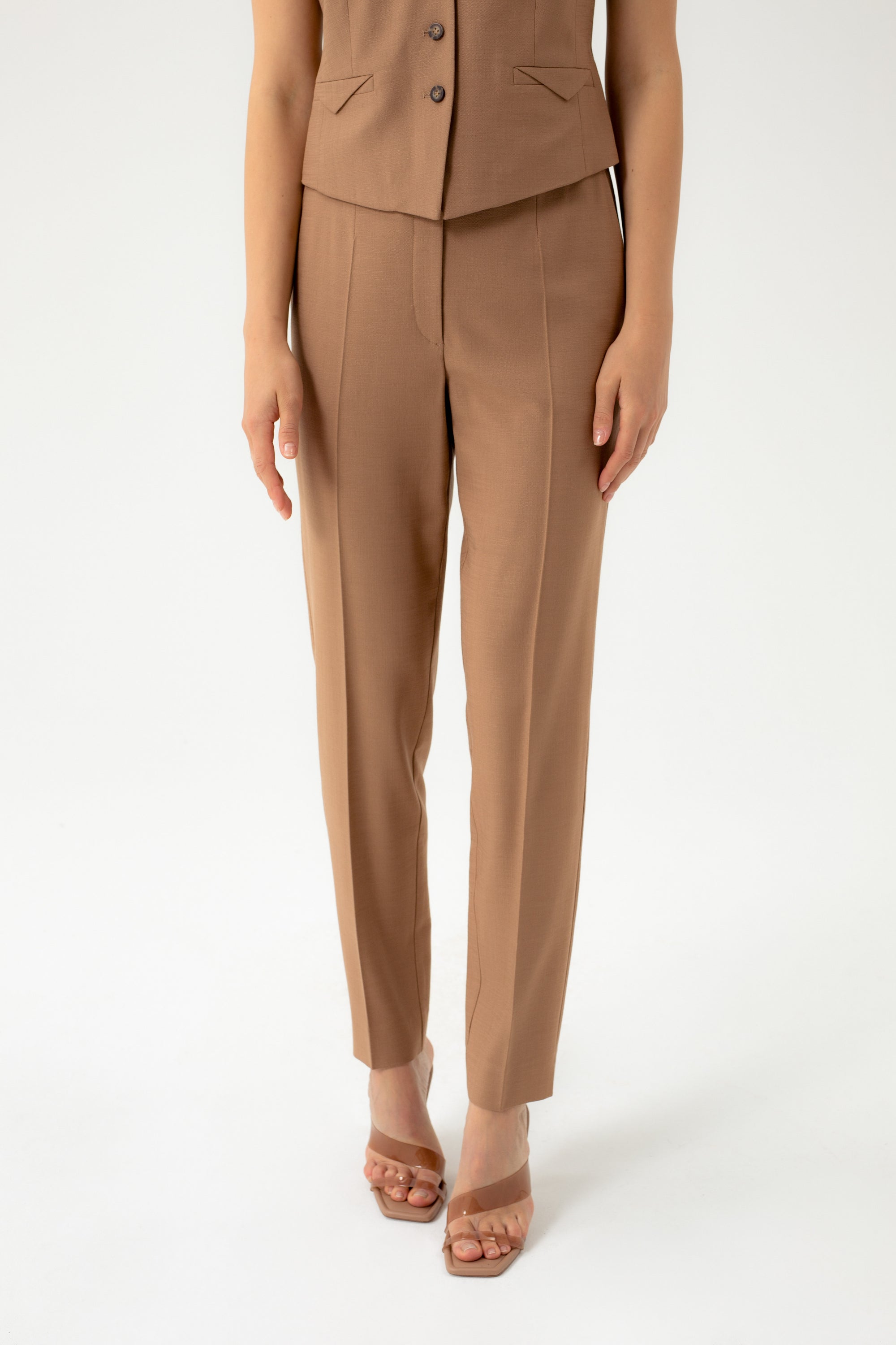SLIM FIT CAMEL TROUSERS WITH FRONT PLEATS