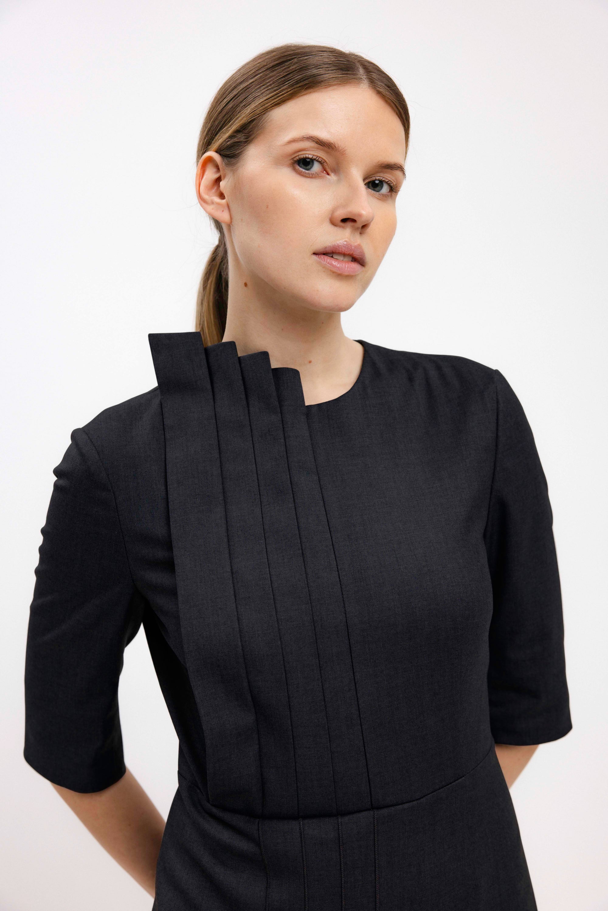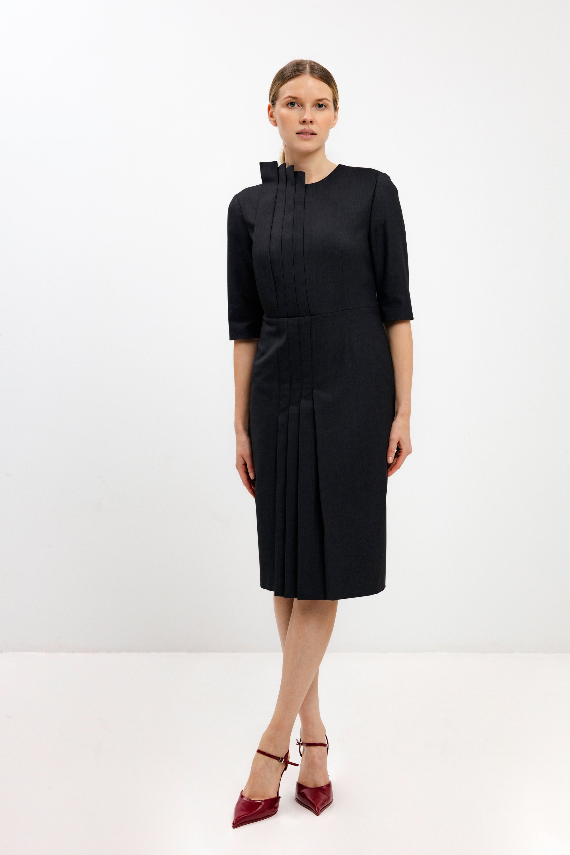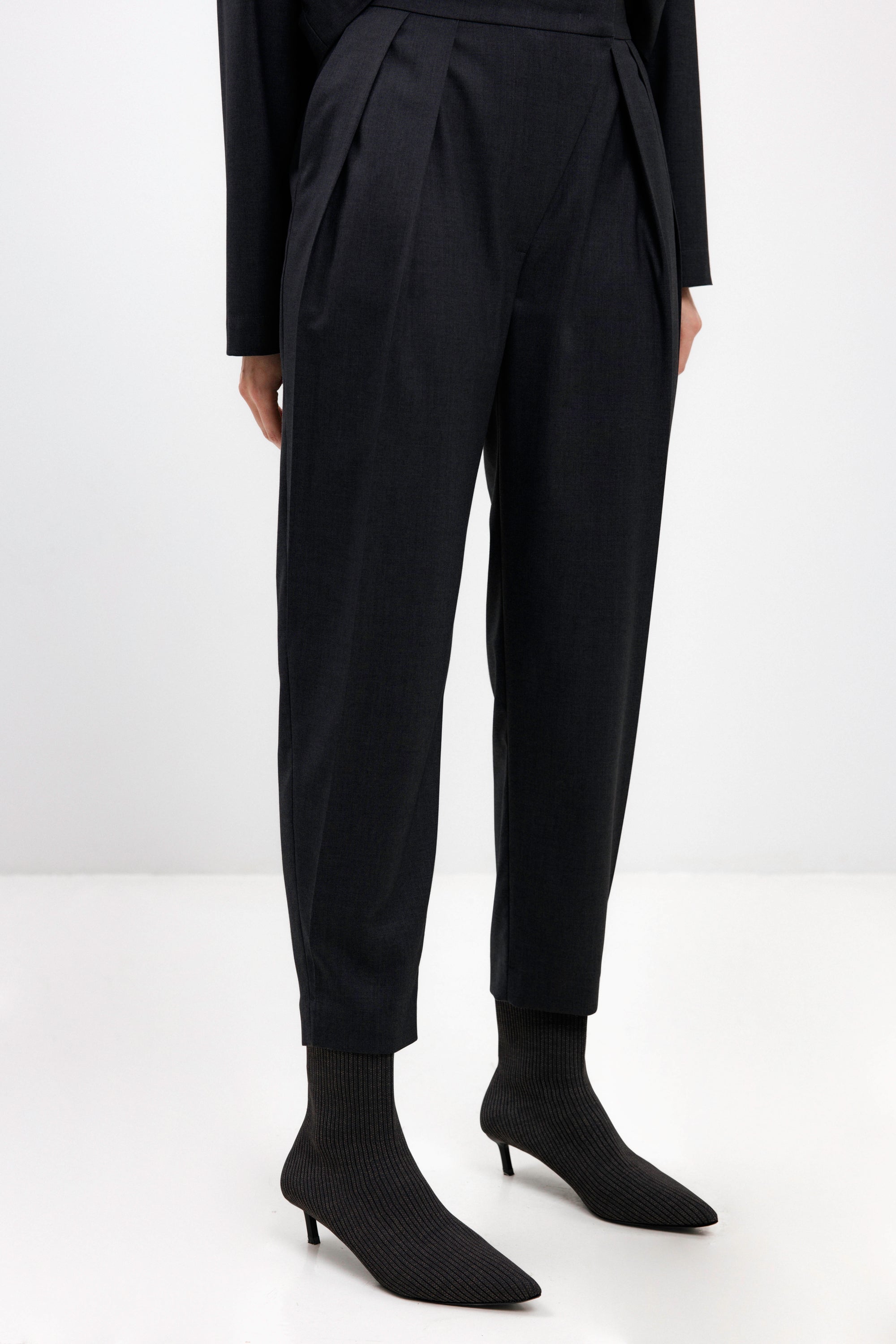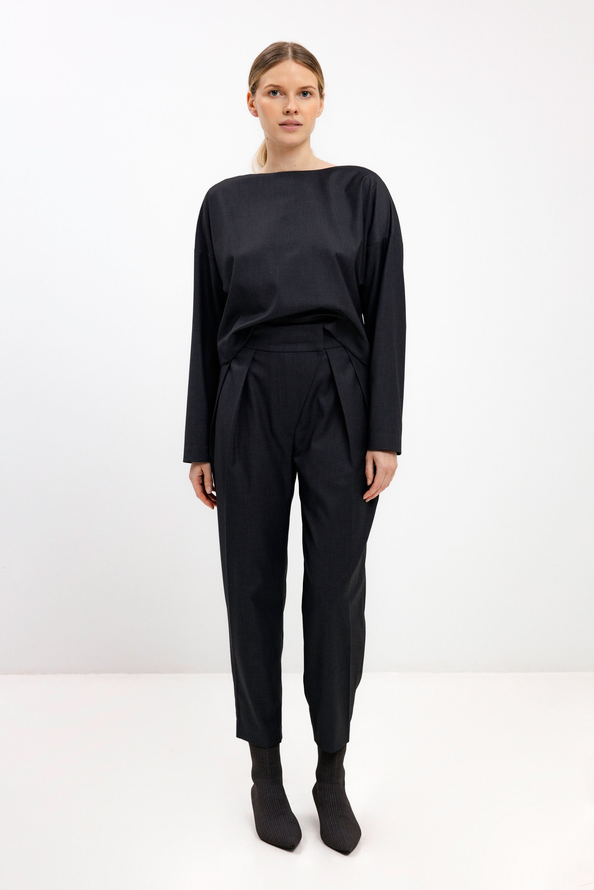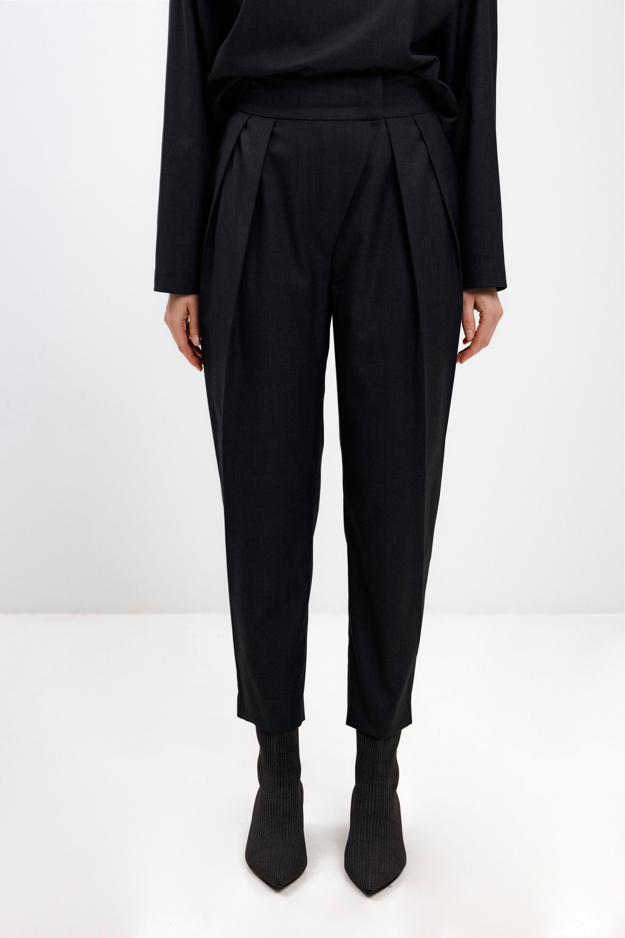 BLACK WIDE-LEG TROUSERS WITH DEEP PLEATS