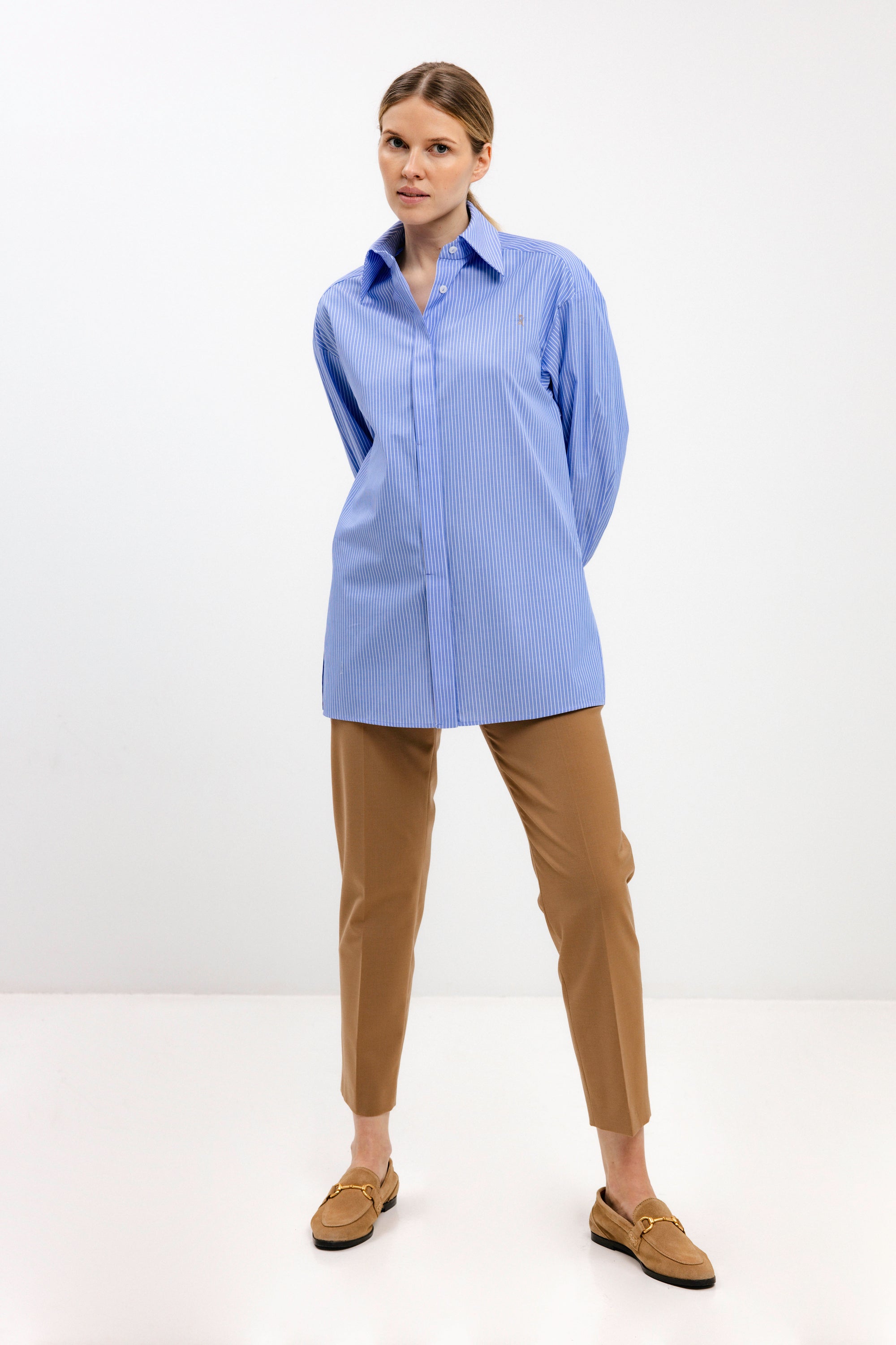 LIGHT BLUE SHIRT WITH SIDE GATHERING