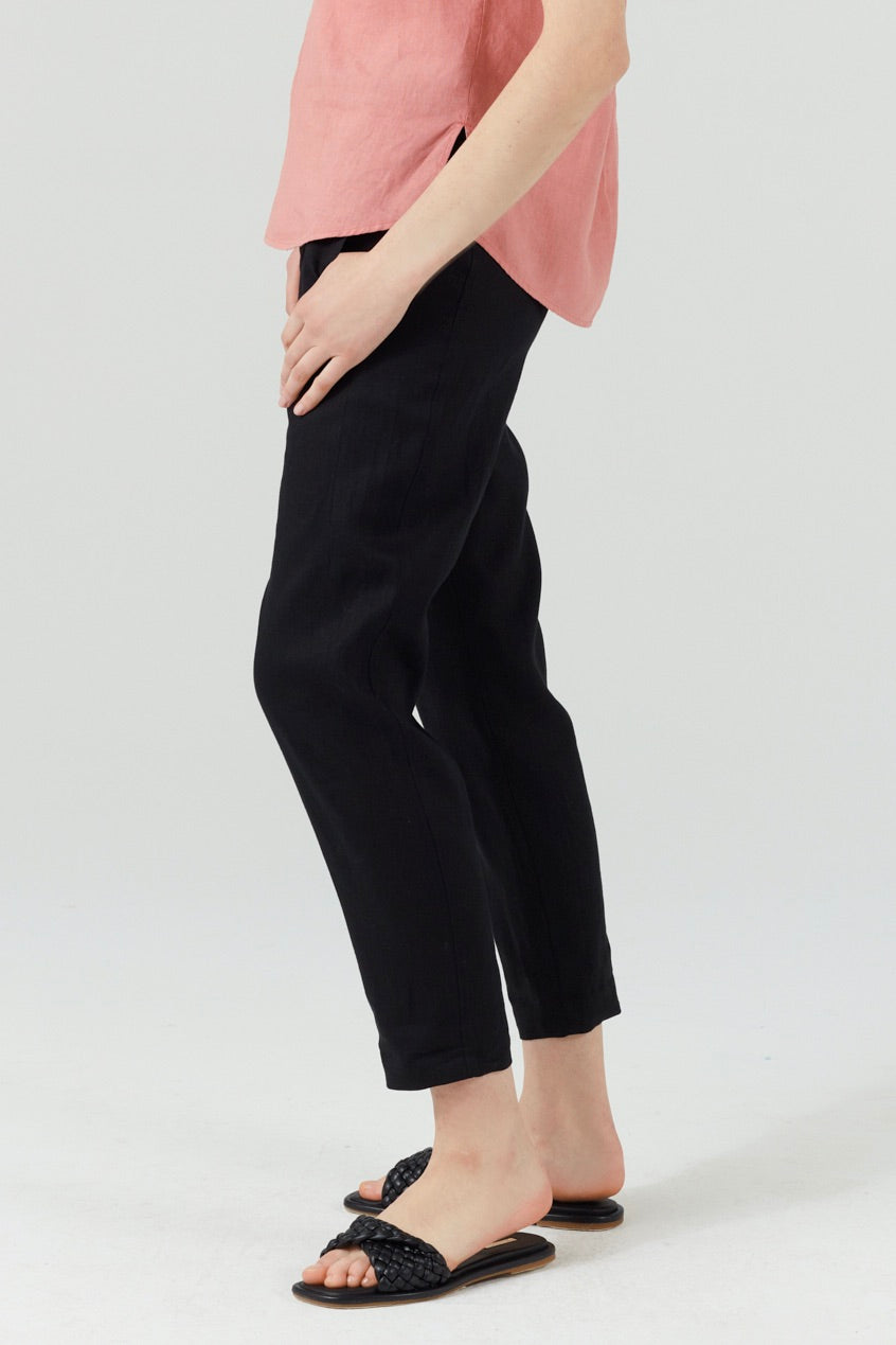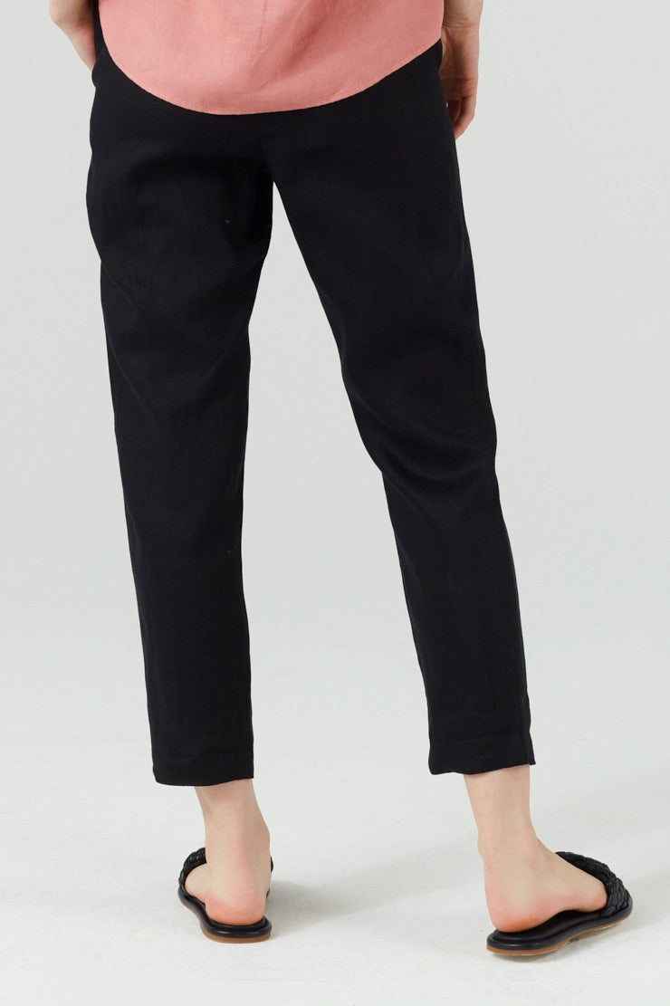 Linen Rich Tapered Ankle Grazer Trousers Black
