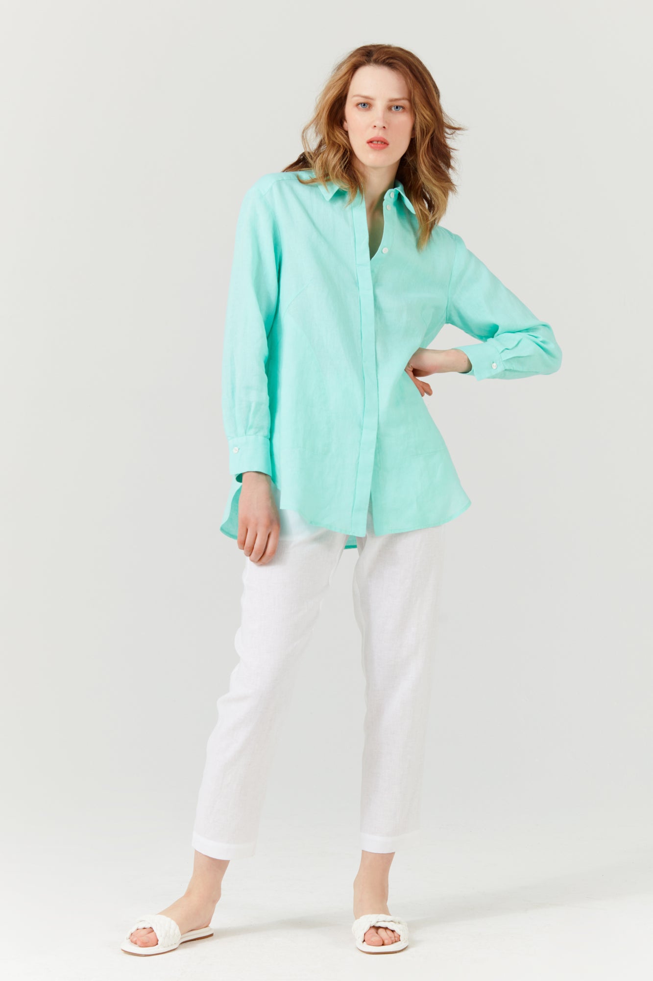 LINEN STRAIGHT LEG TROUSERS WITH STRIPE