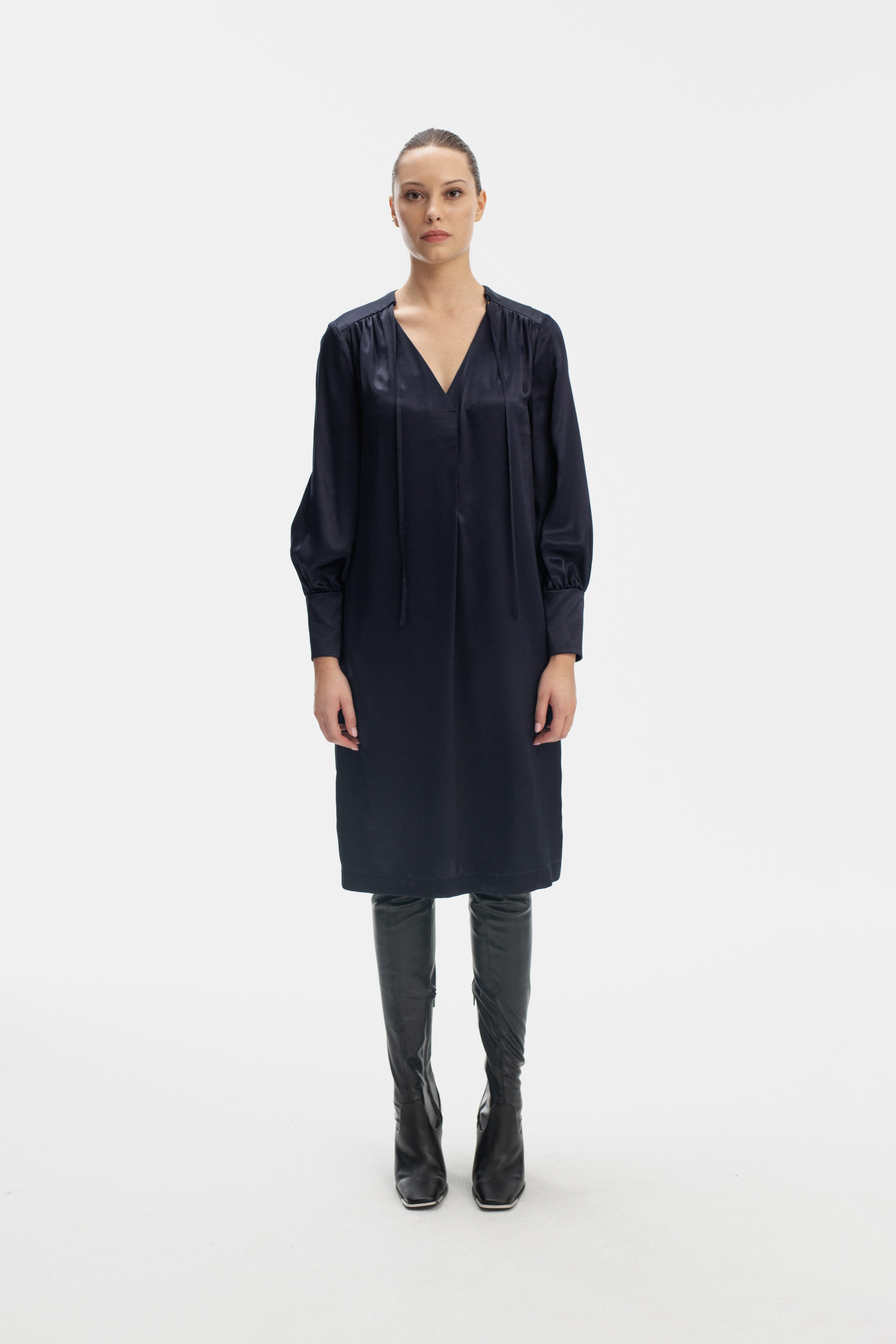 MĖLYNA TIESAUS SILUETO SUKNELĖ