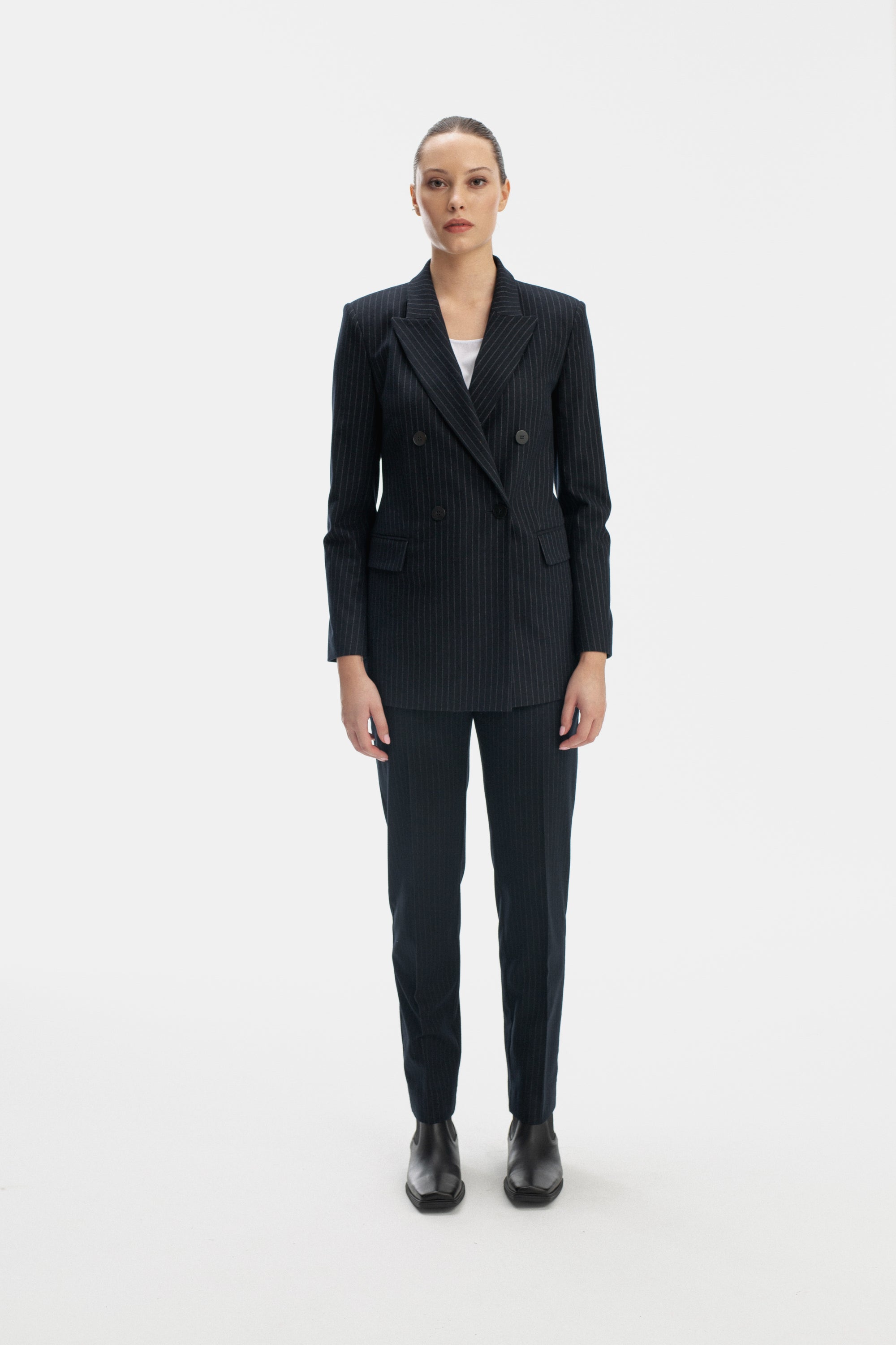 SLIM FIT NAVY TROUSERS IN STRIPES