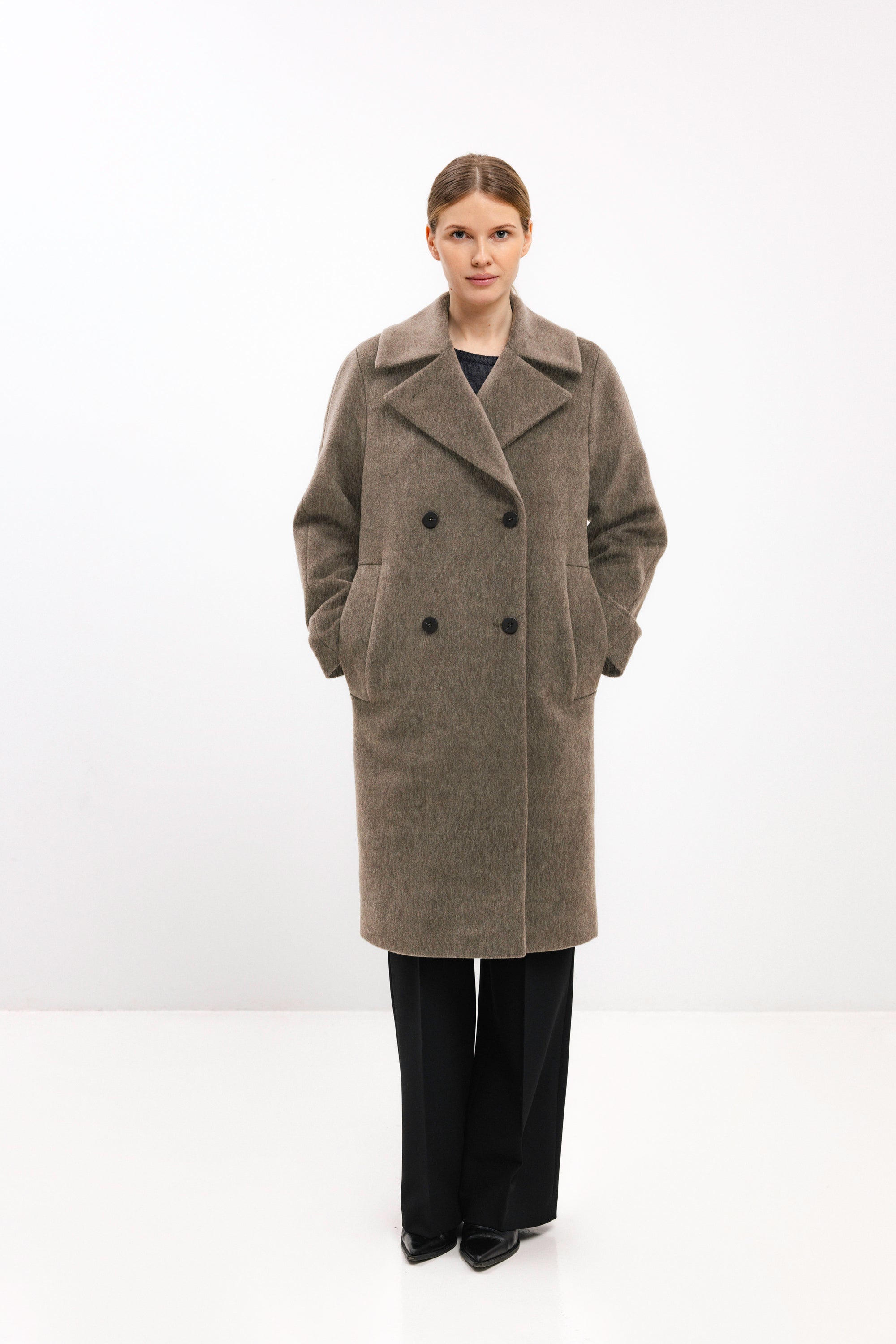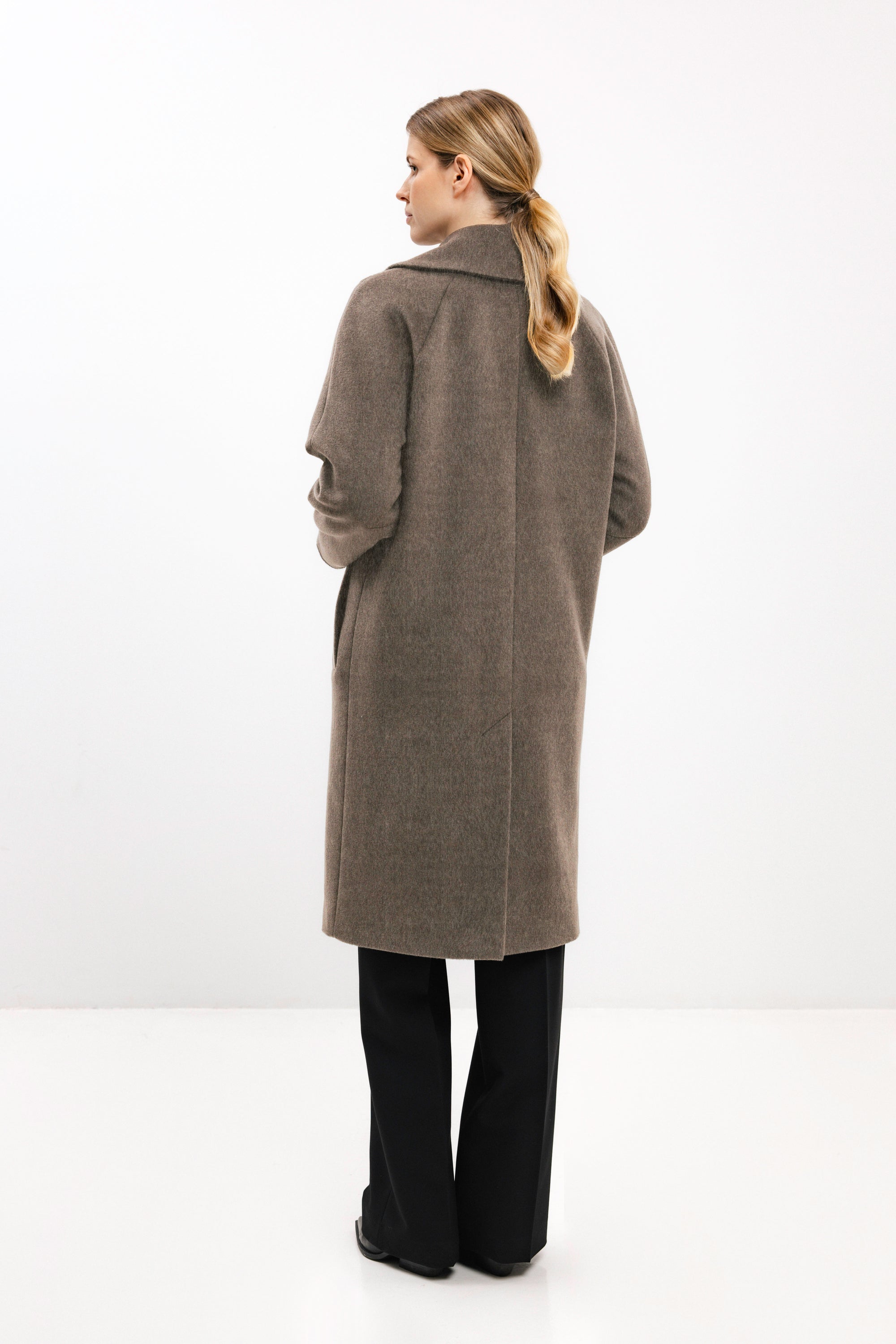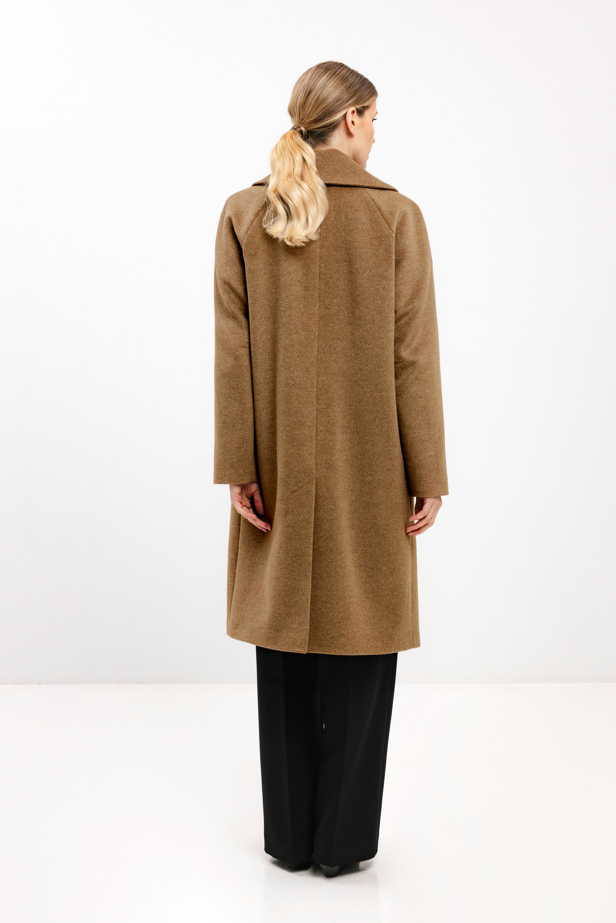 SMĖLINIO MELANŽO ATSPALVIO TIESUS PALTAS SU KAŠMYRU
