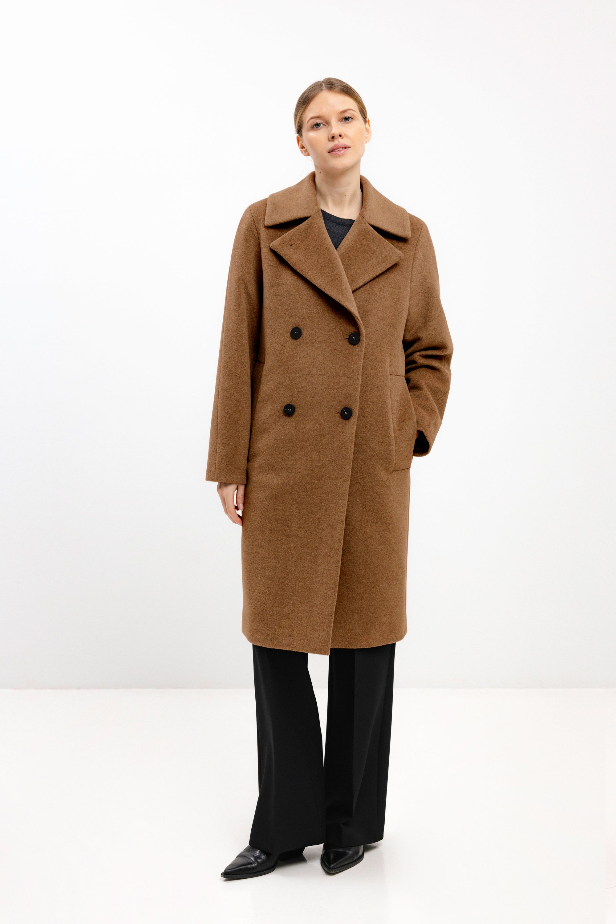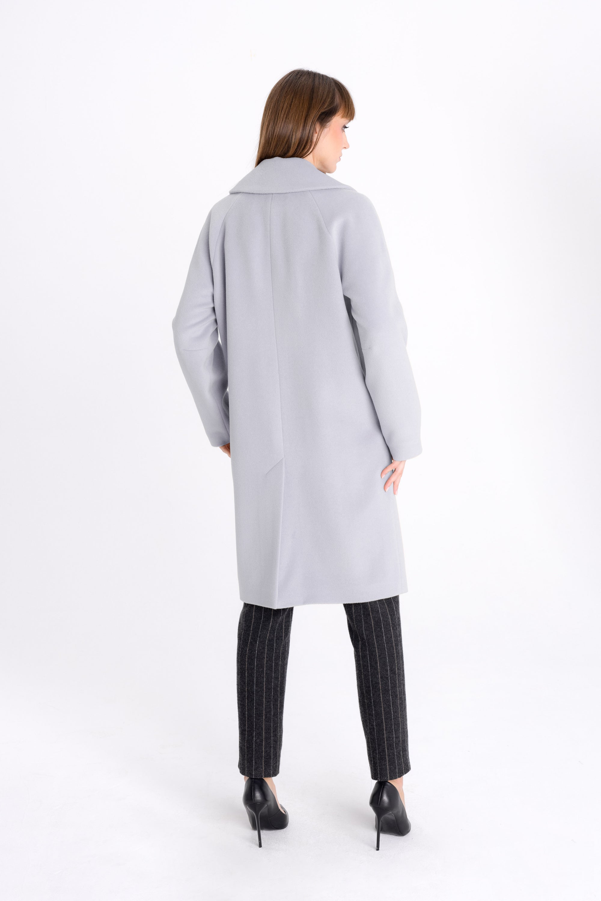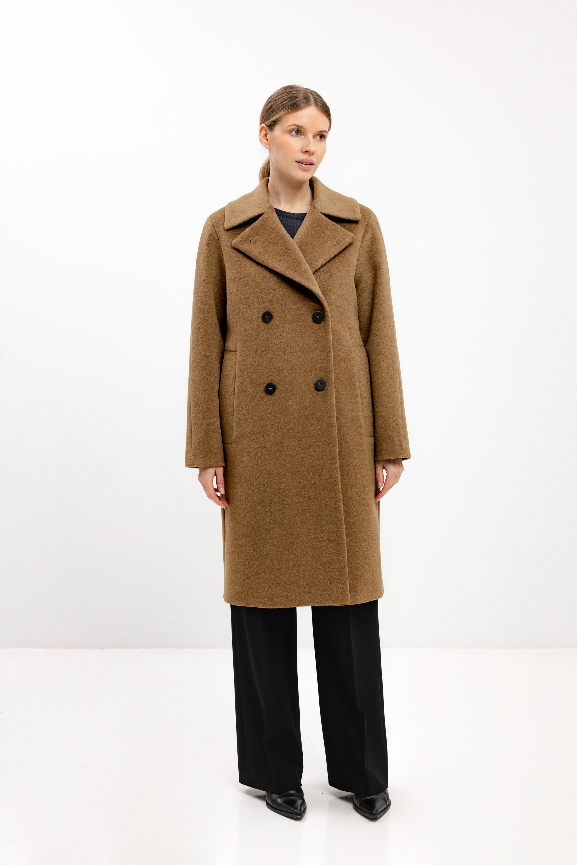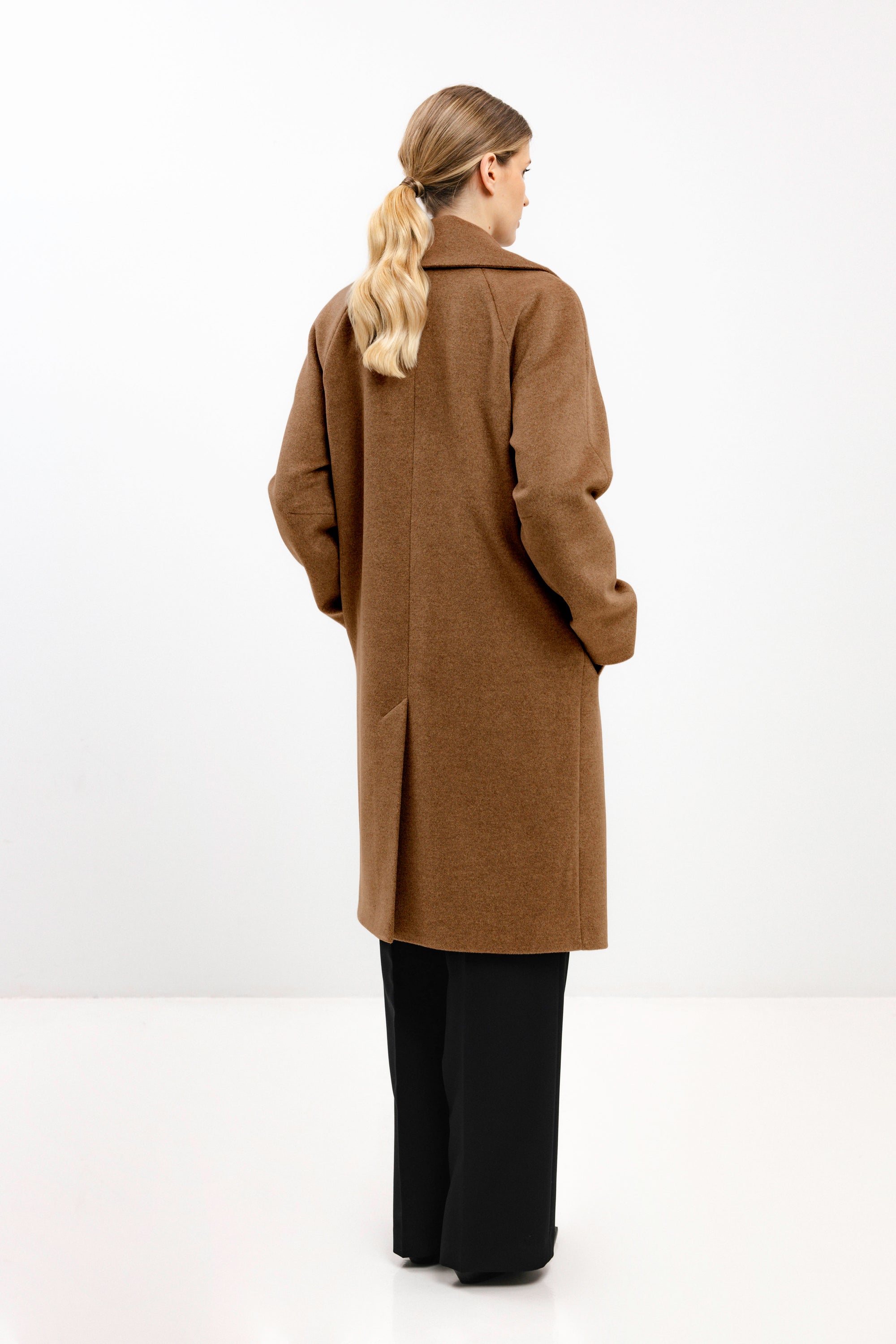 SMĖLINIO MELANŽO ATSPALVIO TIESUS PALTAS SU KAŠMYRU
