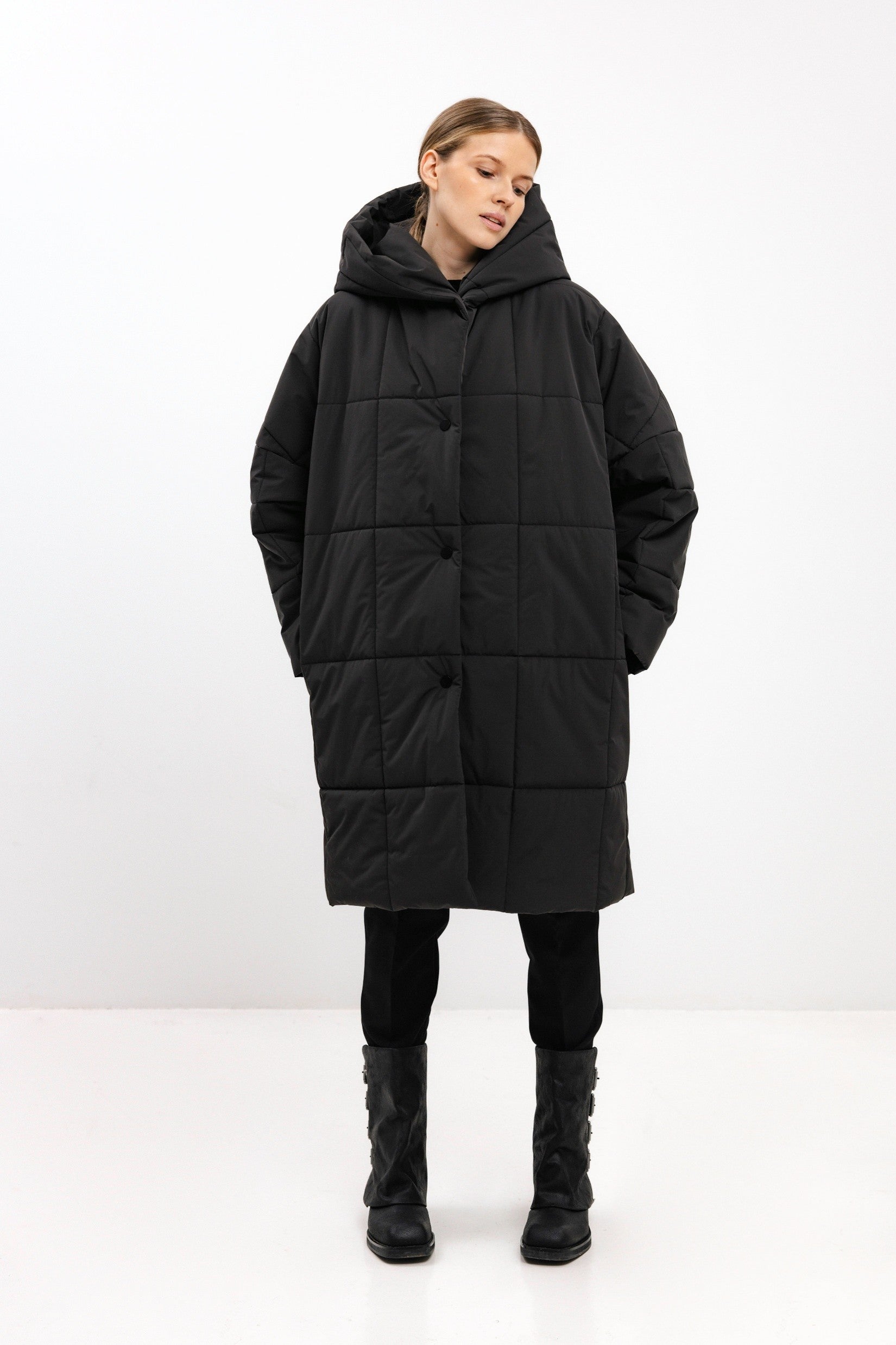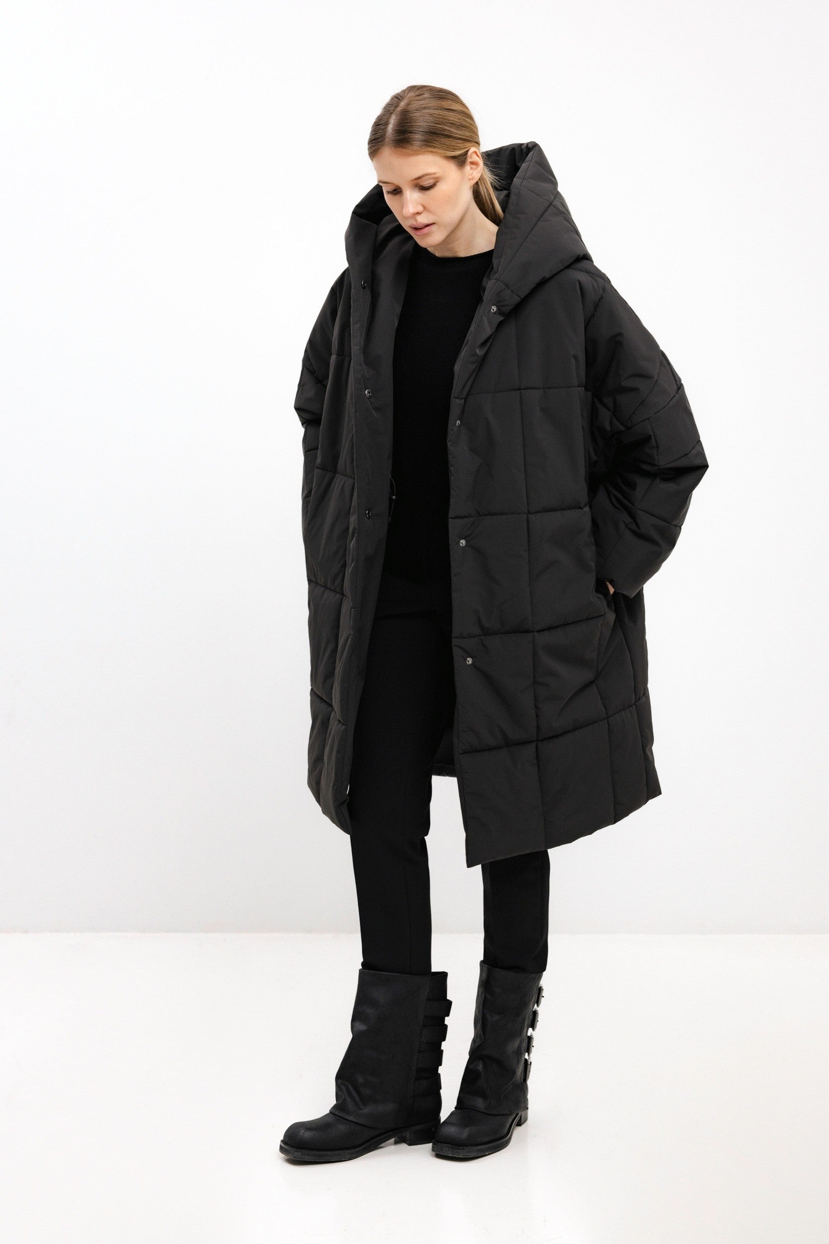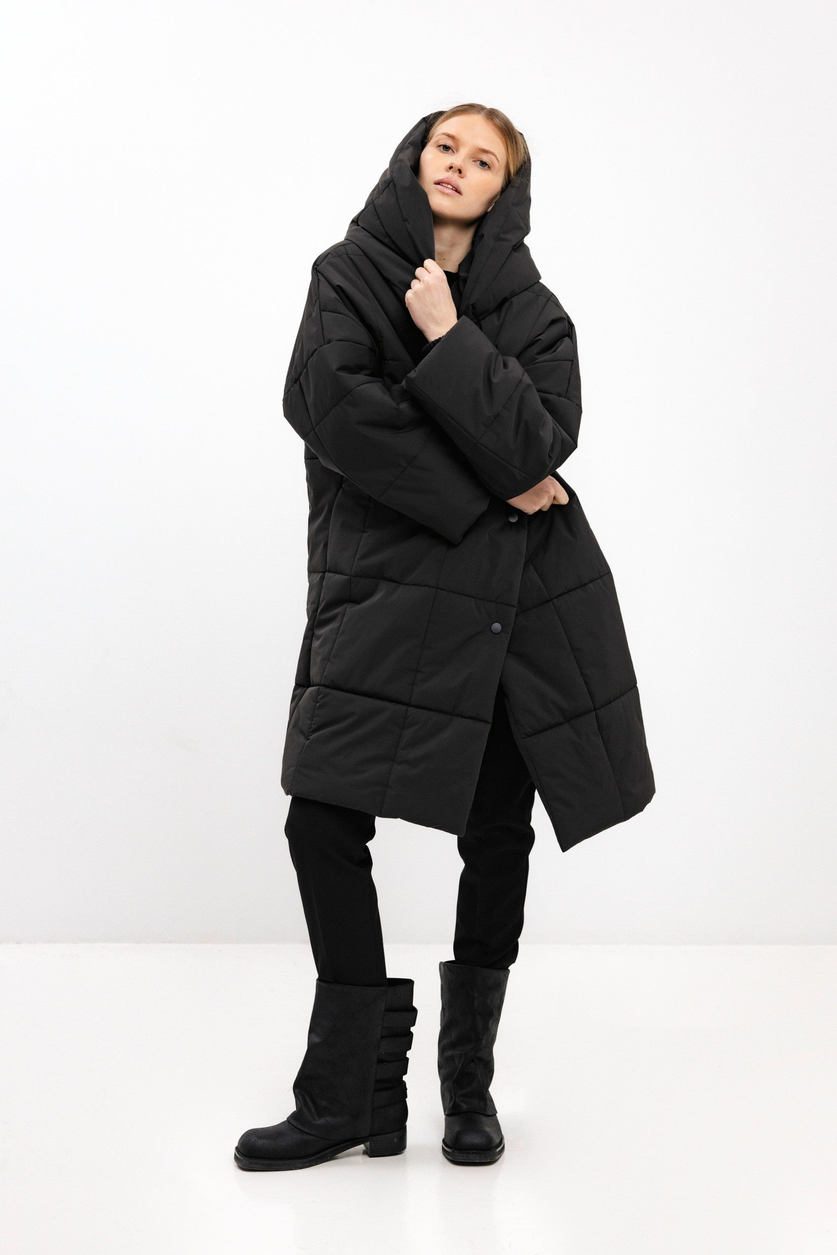 JUODAS ILGAS LIEMENUOTAS PALTAS SU ANGOROS VILNA