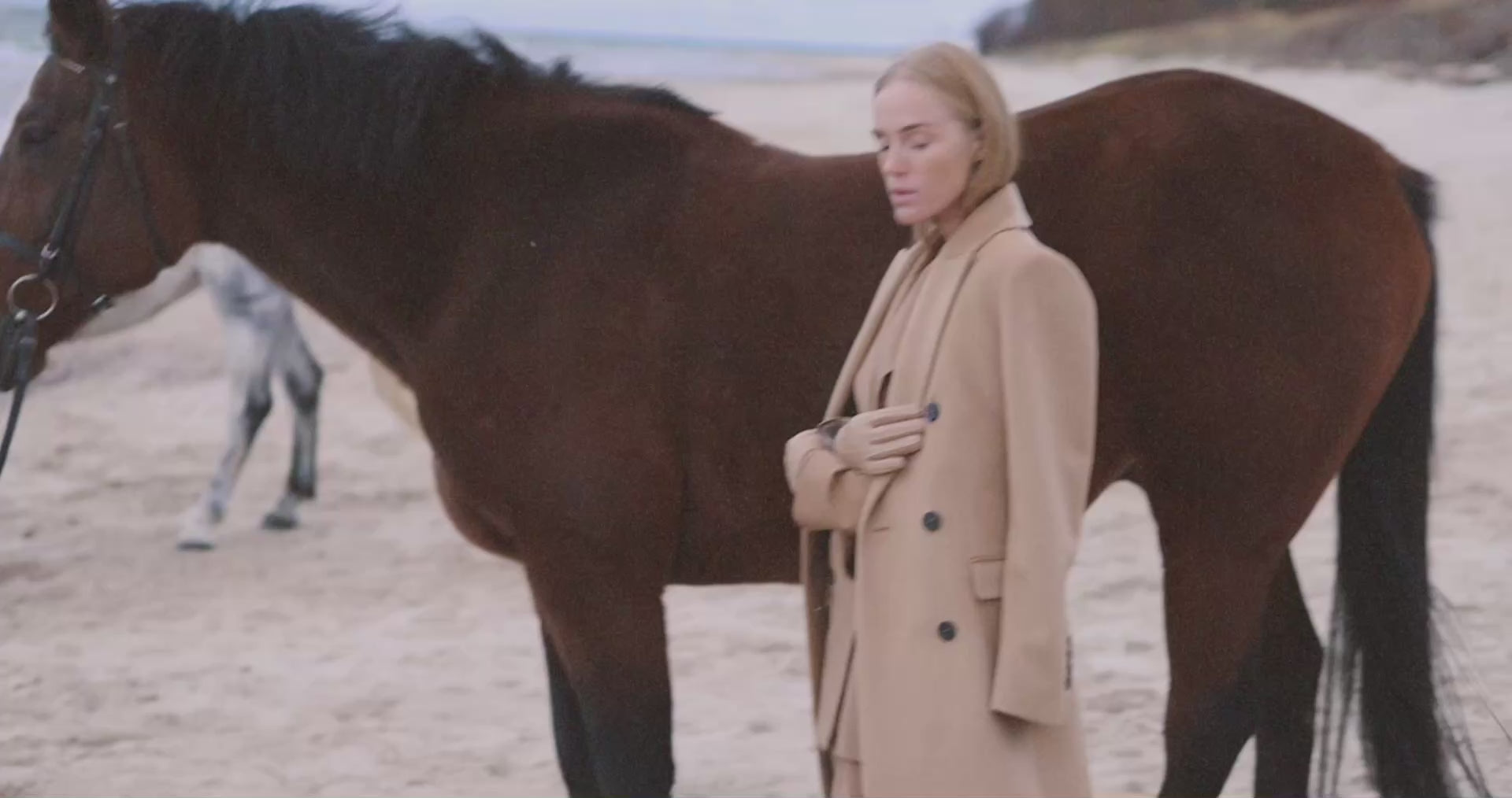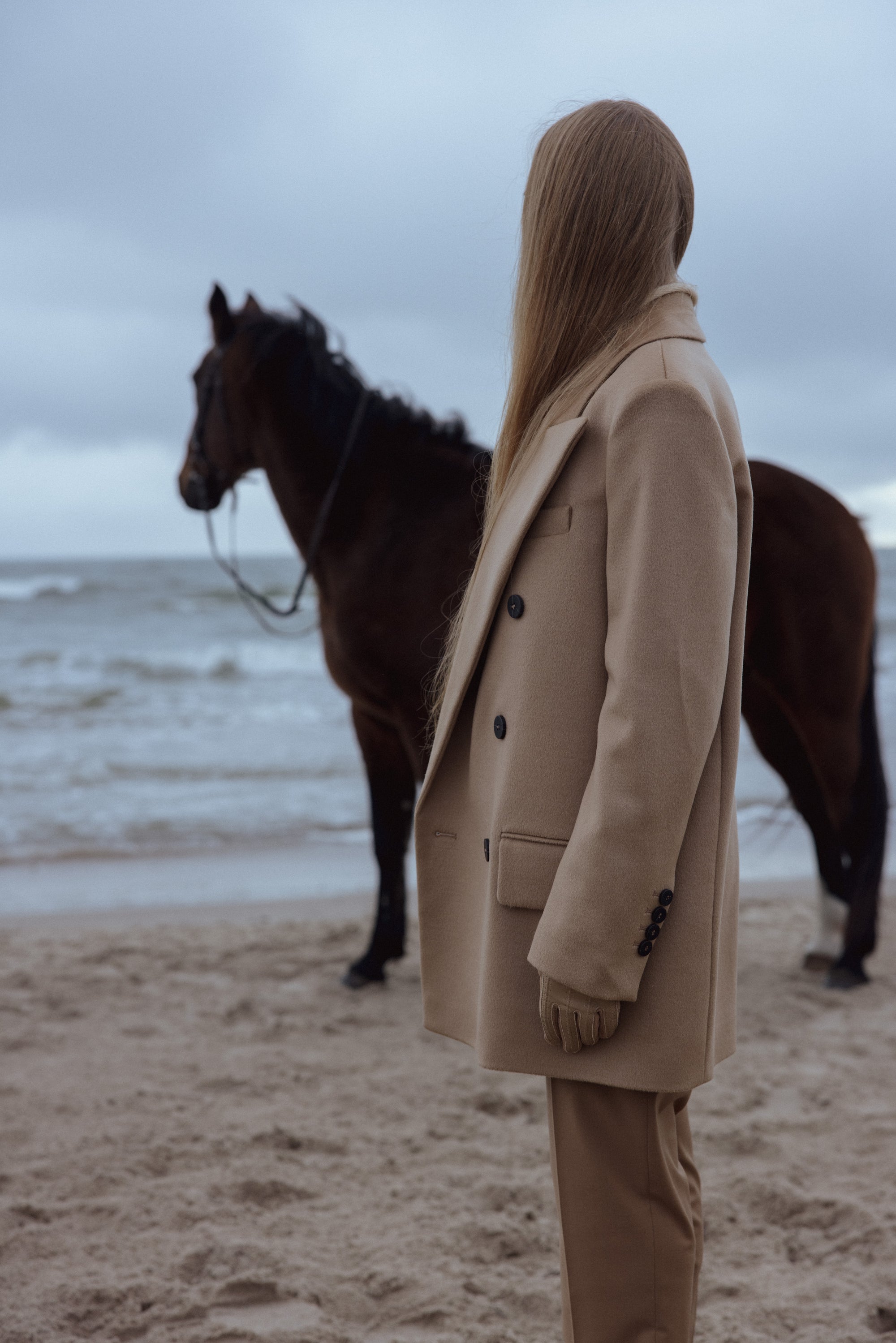 Classic camel and deep navy tones define the palette, while tailored blazers, double-breasted coats, and structured trousers express the heritage of impeccable craftsmanship. Every piece, crafted from luxurious fabrics and finished with meticulous detail, evokes the grace of tradition reinterpreted for the modern woman.