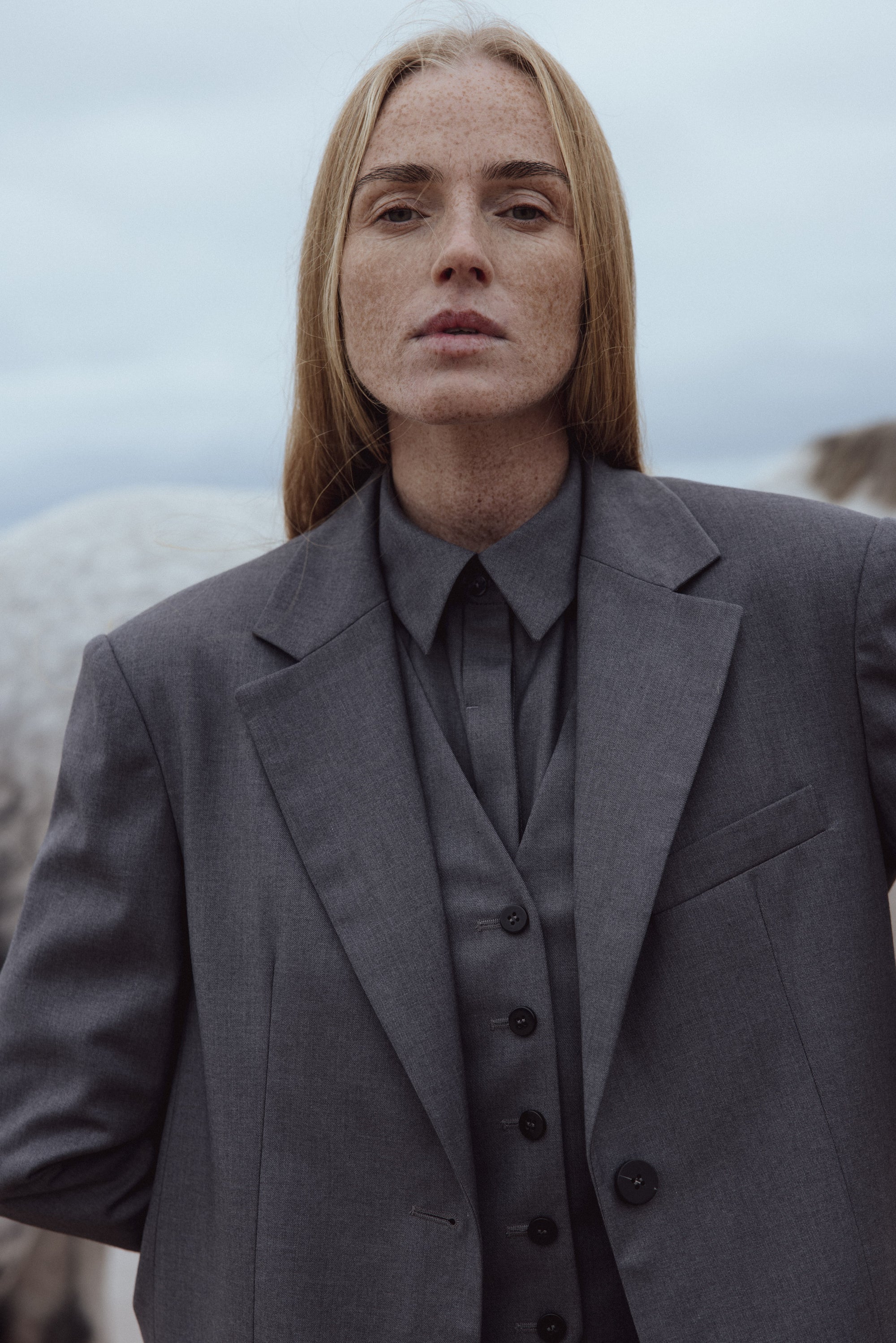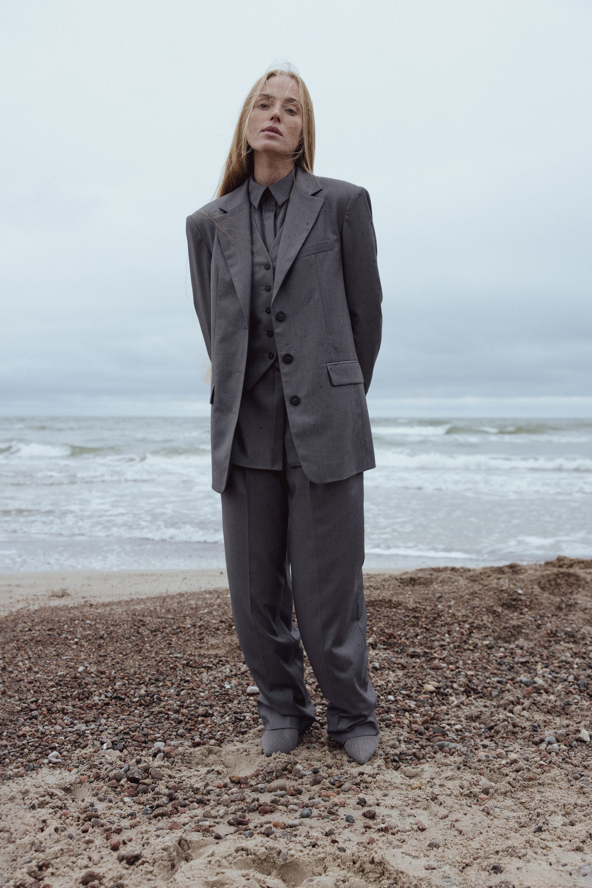 A grey monochrome capsule that captures the essence of the city that never sleeps. Inspired by New York’s urban landscape and architectural textures, it embodies the dynamic spirit and rhythm of metropolitan life, while celebrating rare moments of calm within the chaos. The palette reflects steel, concrete, and glass, with shades of grey forming a visual language shaped by architectural silhouettes, precise tailoring, and subtle drapery. Each piece is born from the city’s skyline yet connects to the body with ease, lightness, and comfort.