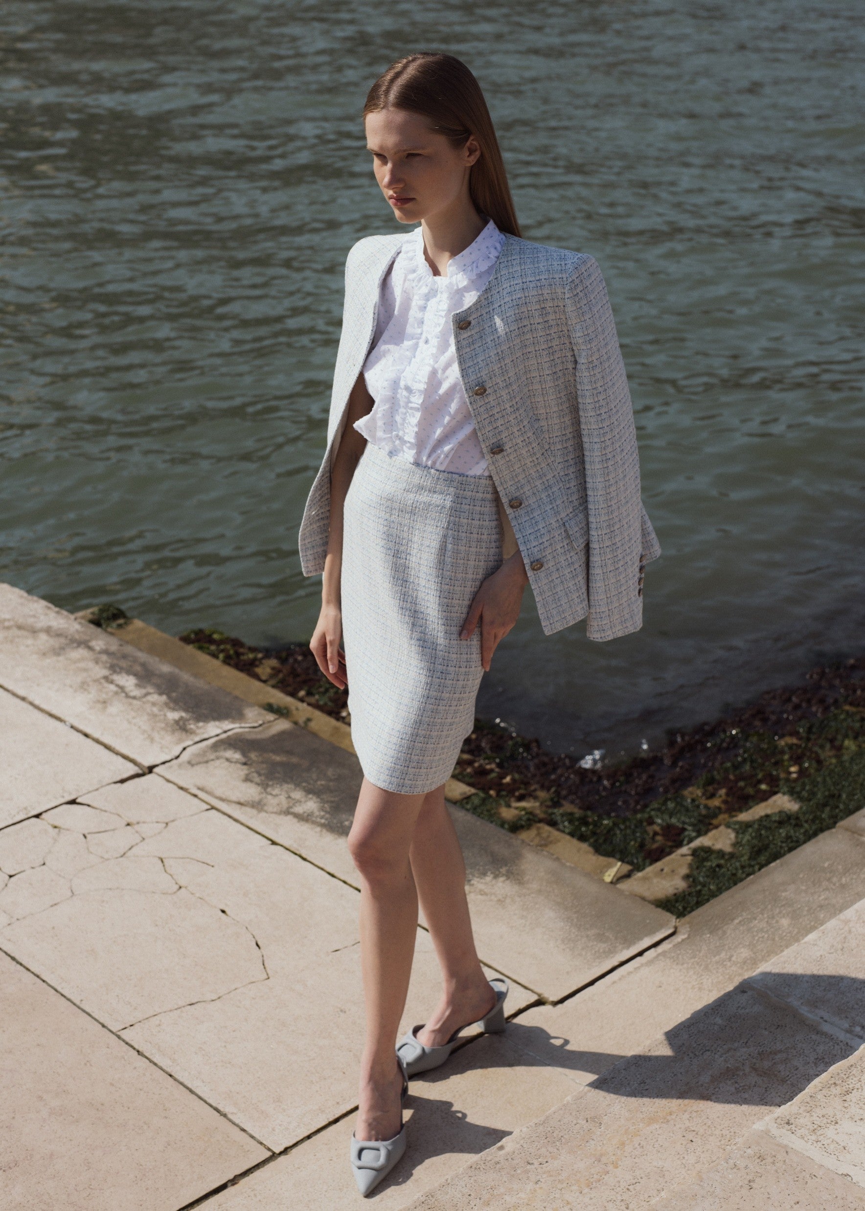 A visual ode to effortless elegance, The Perfect Postcard collection captures the spirit of timeless travel and modern sophistication. Merging classic silhouettes with relaxed tailoring, each piece reflects a balance of structure and softness. Inspired by coastal escapes and vintage charm, the palette leans into powder blues, crisp whites, and serene neutrals, echoing Mediterranean skies. Delicate details and subtle retro nods bring personality to clean lines and minimalist cuts.