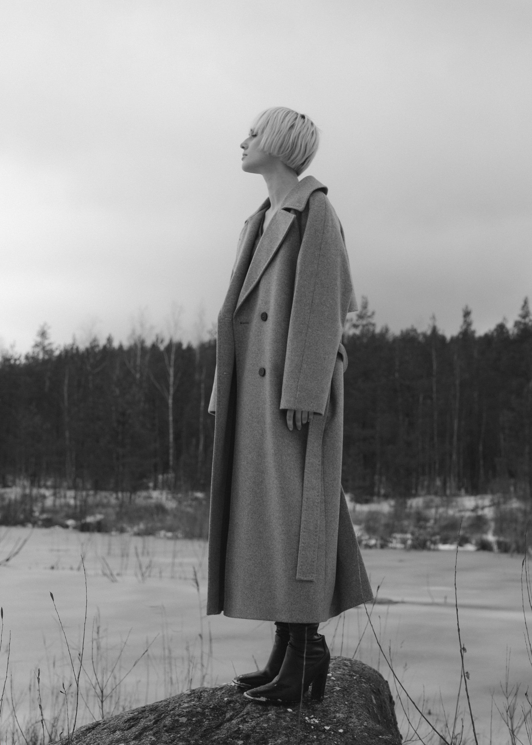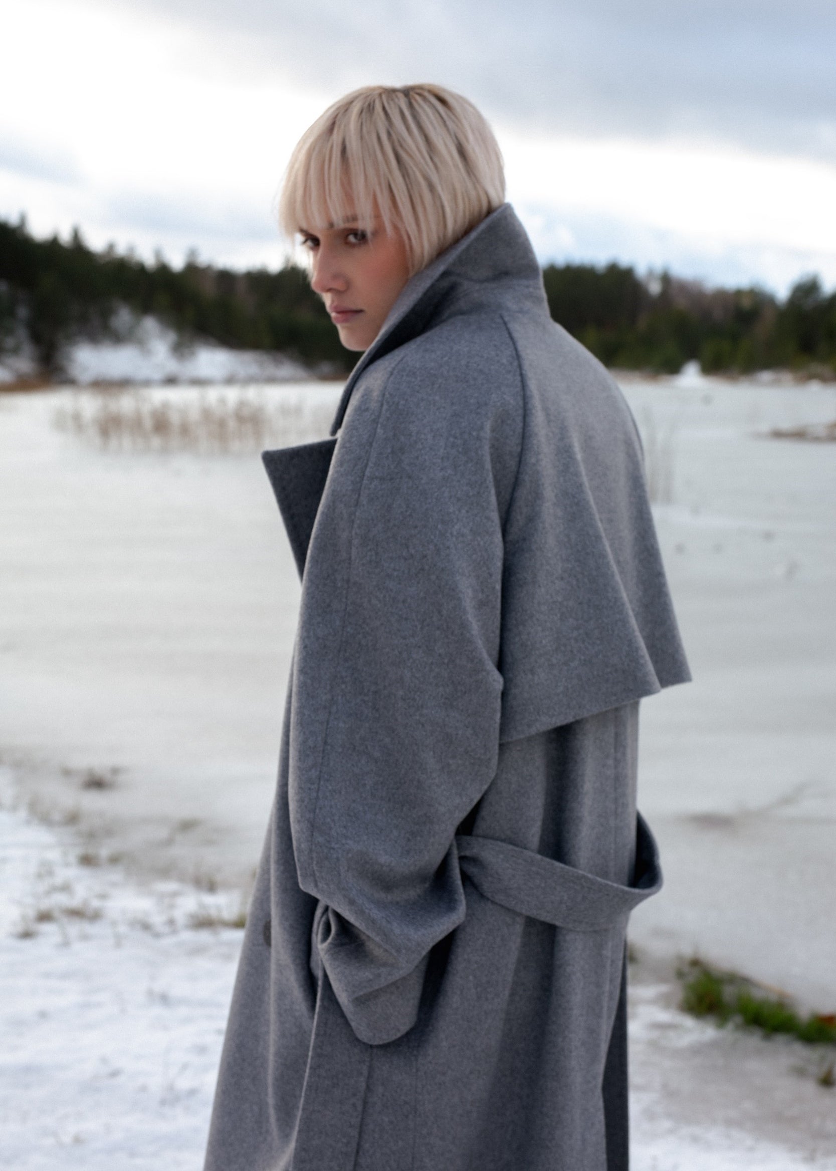 GREY DOUBLE-BREASTED COAT WITH BELT